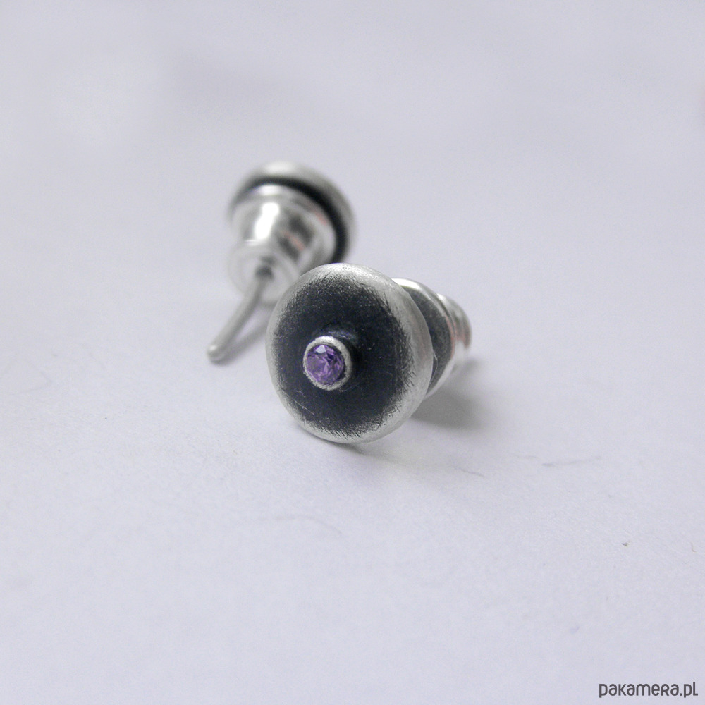 Oryginalność i prostota. OKRĄG - kształt doskonały. Kolekcję cechuje elegancja i prostota jak również ekstrawagancja i indywidualizm. Kolczyki na sztyftach wykonane są ze srebro, cyrkonia. Srebro - próby 0,925, zmatowione, oksydowane. Średnica kolczyka - 0,7 cm