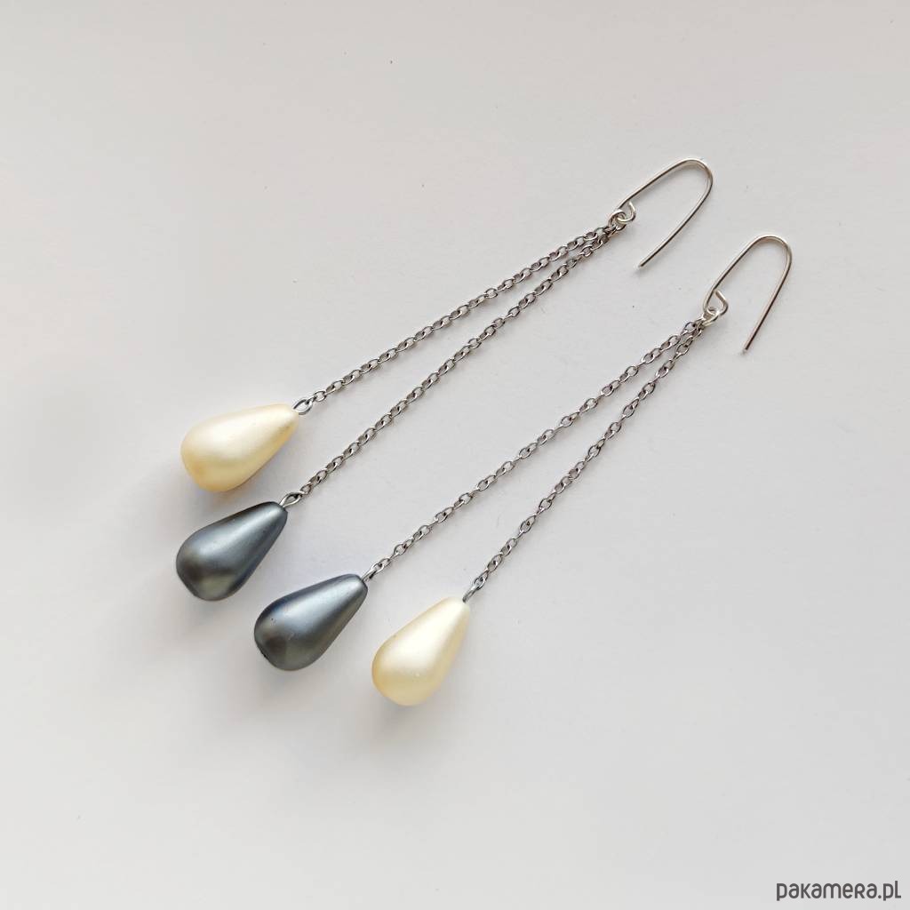 Oryginalność i prostota. OKRĄG – kształt doskonały. Kolekcję cechuje elegancja i prostota jak również ekstrawagancja i indywidualizm. Kolczyki wykonane są ze srebro, szklane koraliki ( 18X11 mm) , stal chirurgiczna . Srebro – próby 0,925, zmatowione. Długość kolczyków – ok. 9cm.