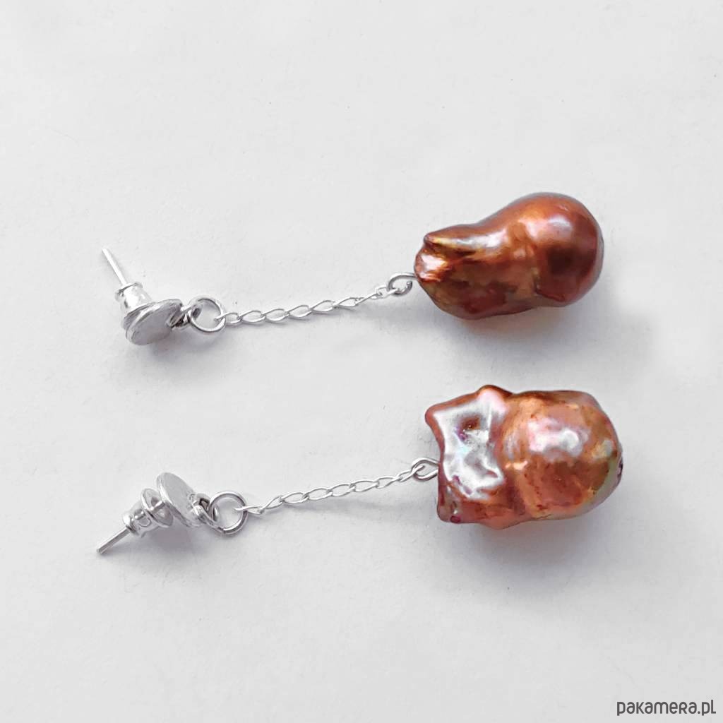 Oryginalność i prostota. OKRĄG – kształt doskonały. Kolekcję cechuje elegancja i prostota jak również ekstrawagancja i indywidualizm. Kolczyki wykonane są ze srebro, Perła słodkowodna podłużna brązowa 18 mm. Srebro – próby 0,925, zmatowione. Długość kolczyków – ok. 5,5 cm