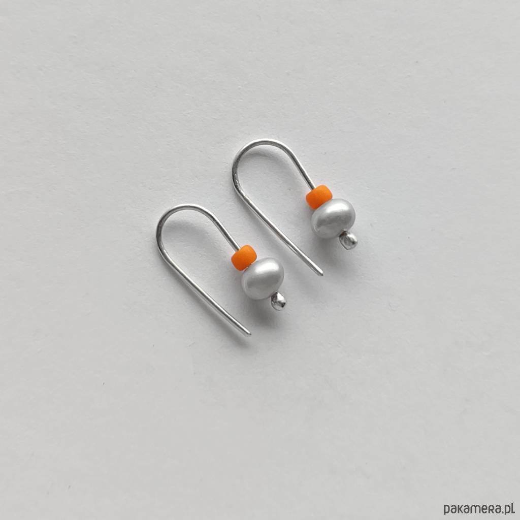 Oryginalność i prostota. OKRĄG - kształt doskonały. Kolekcję cechuje elegancja i prostota jak również ekstrawagancja i indywidualizm. Kolczyki wykonane są z - srebro, Perła słodkowodna srebrna oponka 5x3mm, szklane koraliki. Srebro - zmatowione. Długość ok 1,7 cm.