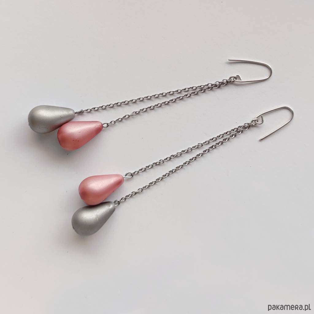 Oryginalność i prostota. OKRĄG – kształt doskonały. Kolekcję cechuje elegancja i prostota jak również ekstrawagancja i indywidualizm. Kolczyki wykonane są ze srebro, szklane koraliki ( 18X11 mm) , stal chirurgiczna . Srebro – próby 0,925, zmatowione. Długość kolczyków – ok. 9cm.