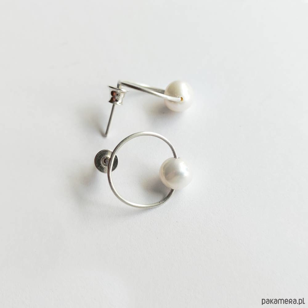 Oryginalność i prostota. OKRĄG - kształt doskonały. Kolekcję cechuje elegancja i prostota jak również ekstrawagancja i indywidualizm. Kolczyki na sztyftach wykonane są z - srebro, perła słodkowodna - 0,8 cm Srebro - zmatowione. Szerokość ok. 1,5 cm.