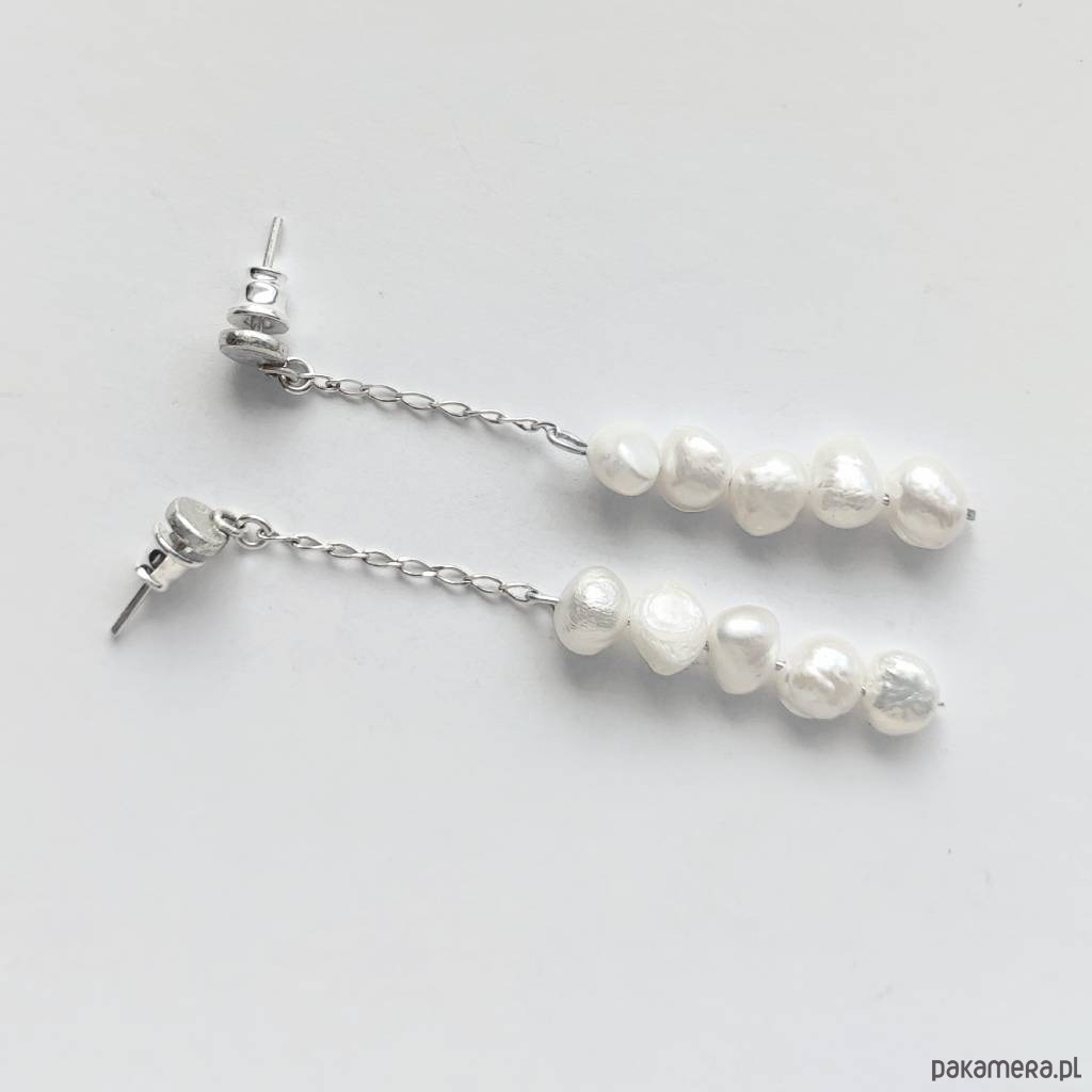 Oryginalność i prostota. OKRĄG - kształt doskonały. Kolekcję cechuje elegancja i prostota jak również ekstrawagancja i indywidualizm. Kolczyki na sztyftach wykonane są z : srebro, Perła hodowlana (0k. 0,8 cm)Srebro - próby 0,925, zmatowione, . Długość kolczyków - ok. 6,5 cm