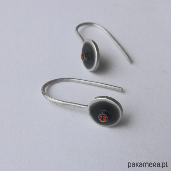 Oryginalność i prostota. OKRĄG - kształt doskonały. Kolekcję cechuje elegancja i prostota jak również ekstrawagancja i indywidualizm. Kolczyki wykonane są ze srebro, cyrkonia. Srebro - próby 0,925,oksydowane zmatowione. Średnica kolczyka - 0,7 cm. Długość 1,5 . Kolczyki są delikatne.