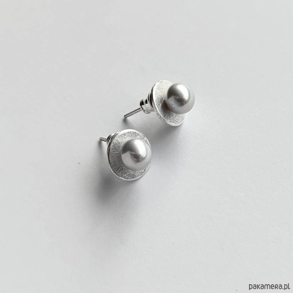 Oryginalność i prostota. OKRĄG – kształt doskonały. Kolekcję cechuje elegancja i prostota jak również ekstrawagancja i indywidualizm. Kolczyki na sztyftach wykonane są z : srebro, Perła szara( ok 7mm) Srebro – próby ,925, zmatowione, . Długość kolczyków – ok. 1,2cm Przykuwają uwagę oryginalnością.