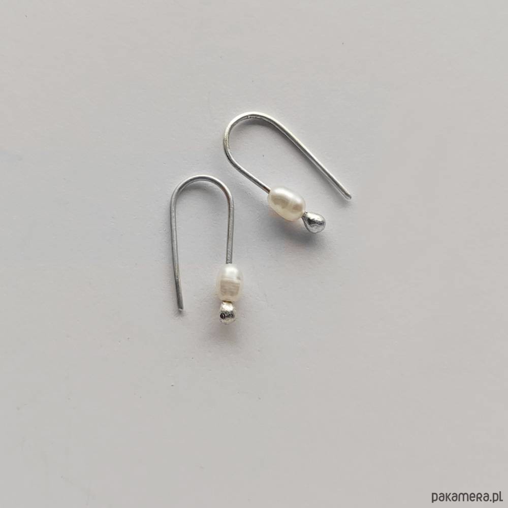 OKRĄG kolczyki Oryginalność i prostota. OKRĄG – kształt doskonały. Kolekcję cechuje elegancja i prostota jak również ekstrawagancja i indywidualizm. Kolczyki wykonane są ręcznie z – srebro, Perła hodowlana ok. 2,5 – 5,5 x 2 – 3,5 mm Srebro – zmatowione. Długość ok. 1,7 cm.