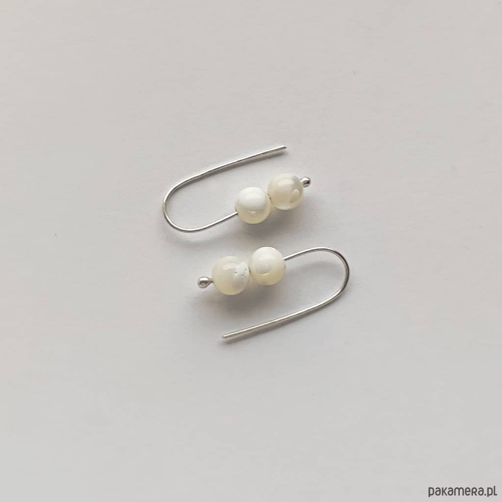 OKRĄG - kolczyki. Oryginalność i prostota. OKRĄG – kształt doskonały. Kolekcję cechuje elegancja i prostota jak również ekstrawagancja i indywidualizm. Kolczyki wykonane są ręcznie ze srebro, masa perłowa 1cm Srebro – próby 0,925, zmatowione, . Długość kolczyków – ok. 3 cm.