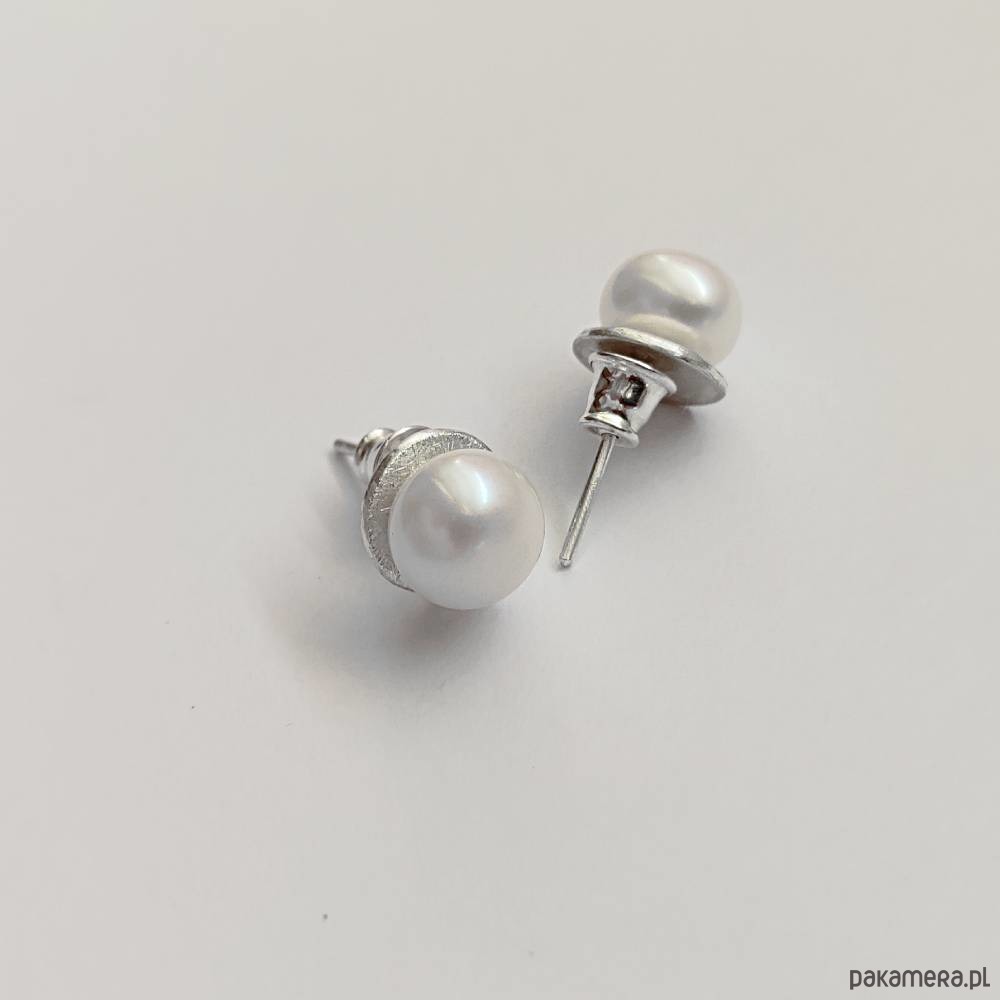 OKRĄG j kolczyki Oryginalność i prostota. OKRĄG - kształt doskonały. Kolekcję cechuje elegancja i prostota jak również ekstrawagancja i indywidualizm. Kolczyki na sztyftach wykonane są ręcznie z : srebro, Perła biała( ok 6mm) Srebro - próby ,925, zmatowione, . Długość kolczyków - ok. 1cm