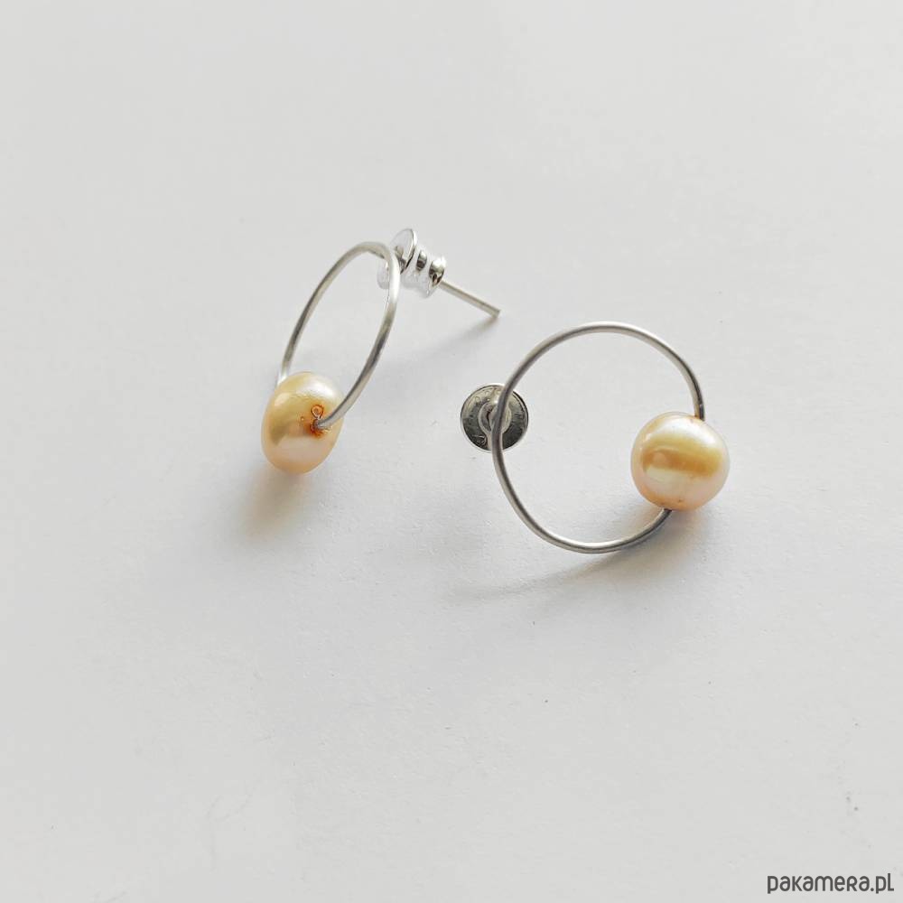 OKRĄG kolczyki Oryginalność i prostota. OKRĄG - kształt doskonały. Kolekcję cechuje elegancja i prostota jak również ekstrawagancja i indywidualizm. Kolczyki na sztyftach wykonane są ręcznie z - srebro, perła słodkowodna - 0,8 cm Srebro - zmatowione fakturowane . Szerokość ok. 1,5 cm.