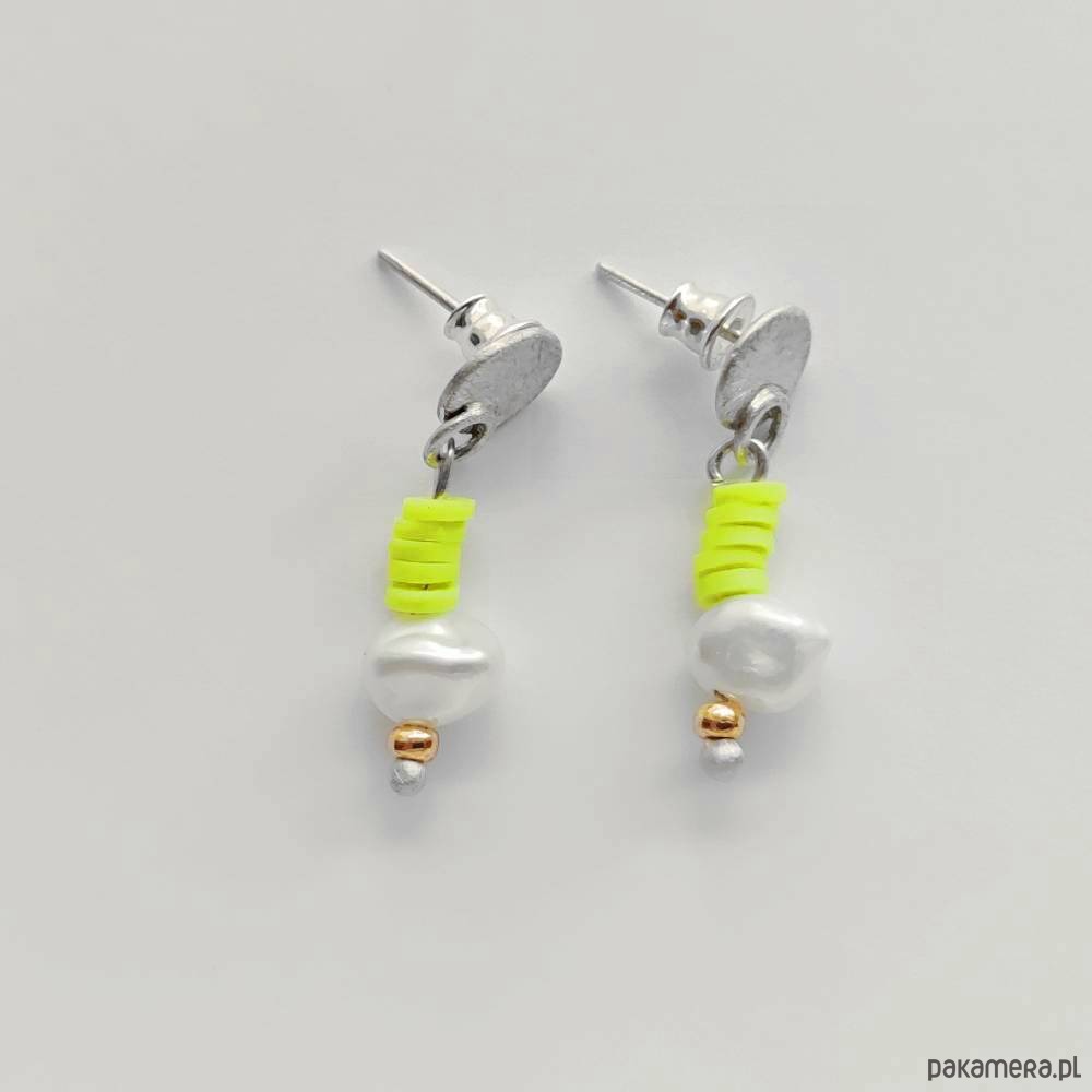Oryginalność i prostota. OKRĄG - kształt doskonały. Kolekcję cechuje elegancja i prostota jak również ekstrawagancja i indywidualizm. Kolczyki na sztyftach wykonane są z : srebro, Perła hodowlana (0k. 0,8 cm), koraliki Katsuki (średnicy 4mm), szklane koraliki.Srebro - próby 0,925, zmatowione, . Długość kolczyków - ok. 3 cm