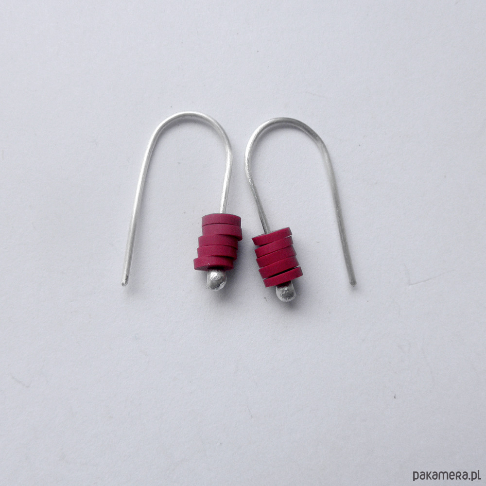 OKRĄG kolczyki Oryginalność i prostota. OKRĄG - kształt doskonały. Kolekcję cechuje elegancja i prostota jak również ekstrawagancja i indywidualizm. Kolczyki wykonane są ze srebro, ) koraliki Katsuki szklane (średnicy 4mm). Srebro - próby 0,925, zmatowione. Długość kolczyków - ok. 2 cm.