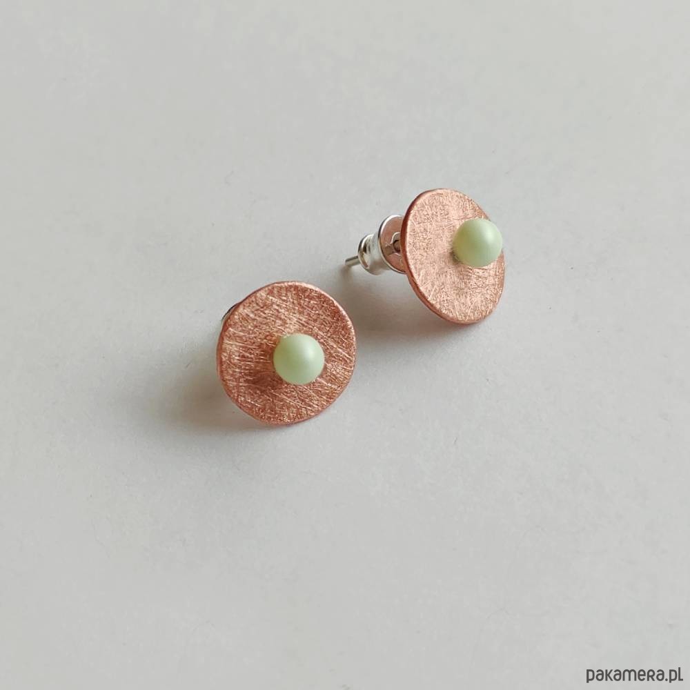 OKRĄG kolczyki. Oryginalność i prostota. OKRĄG - kształt doskonały. Kolekcję cechuje elegancja i prostota jak również ekstrawagancja i indywidualizm. Kolczyki na sztyftach wykonane są z : srebro, swarovski perła( ok 6mm) Srebro - próby 0,925,miedź - zmatowiona, . Długość kolczyków - ok. 1,2cm