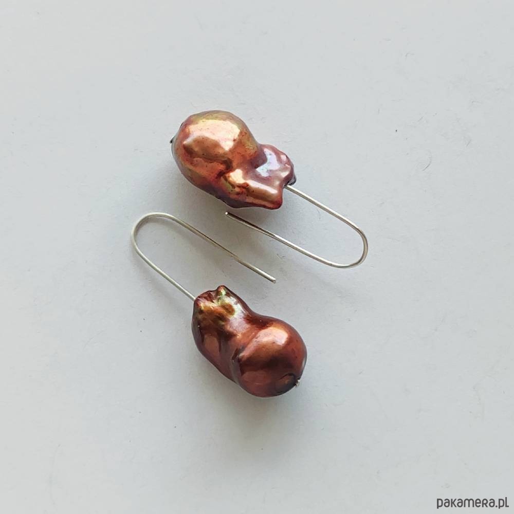 OKRĄG kolczyki Oryginalność i prostota. OKRĄG – kształt doskonały. Kolekcję cechuje elegancja i prostota jak również ekstrawagancja i indywidualizm. Kolczyki wykonane są z : srebro, perła słodkowodna podłużna brązowa 18mm. Srebro – próby 0,925, zmatowione. Długość kolczyków – ok. 3,7 cm