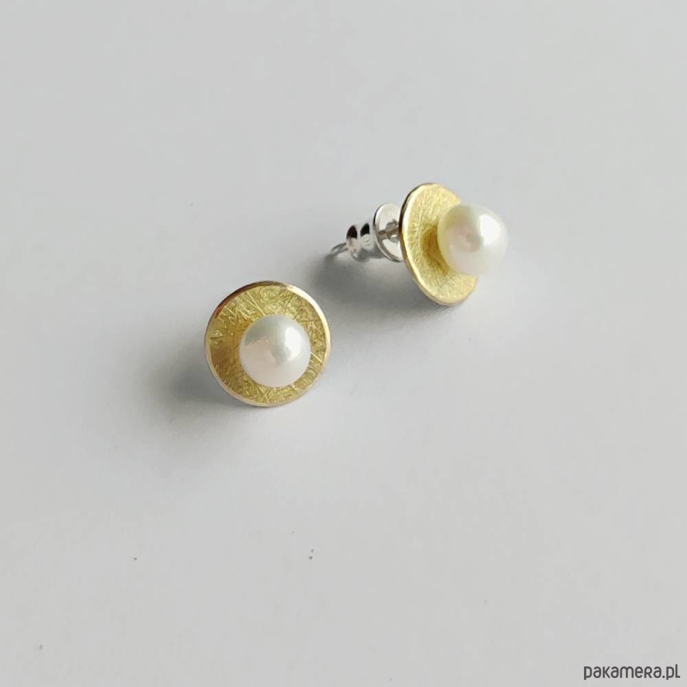 OKRĄG kolczyki . Oryginalność i prostota. OKRĄG – kształt doskonały. Kolekcję cechuje elegancja i prostota jak również ekstrawagancja i indywidualizm. Kolczyki na sztyftach wykonane są z :mosiądz, srebro, Perła biała ( 0k 6mm) , srebro pr. 925 , mosiądz – zmatowiona . Długość kolczyków – ok. 1cm