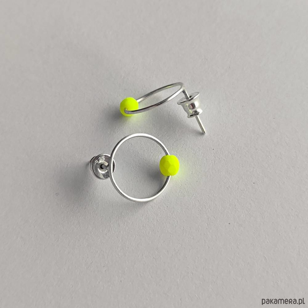 OKRĄG kolczyki Oryginalność i prostota. OKRĄG - kształt doskonały. Kolekcję cechuje elegancja i prostota jak również ekstrawagancja i indywidualizm. Kolczyki na sztyftach wykonane są ręcznie z - srebro, koraliki czeskie 0,4 cm Srebro - zmatowione. Szerokość ok. 1,5 cm. Kolczyki bardzo ładnie prezentują się na uszach.