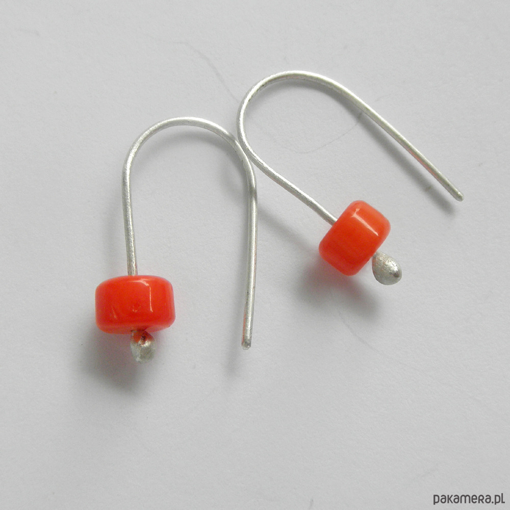 OKRĄG kolczyki. Oryginalność i prostota. OKRĄG - kształt doskonały. Kolekcję cechuje elegancja i prostota jak również ekstrawagancja i indywidualizm. Kolczyki wykonane są ze srebro, koral 0,6 cm. Srebro - próby 0,925, zmatowione, . Długość kolczyków - ok. 2 cm. Kolczyki bardzo ładnie prezentują się na uszach.