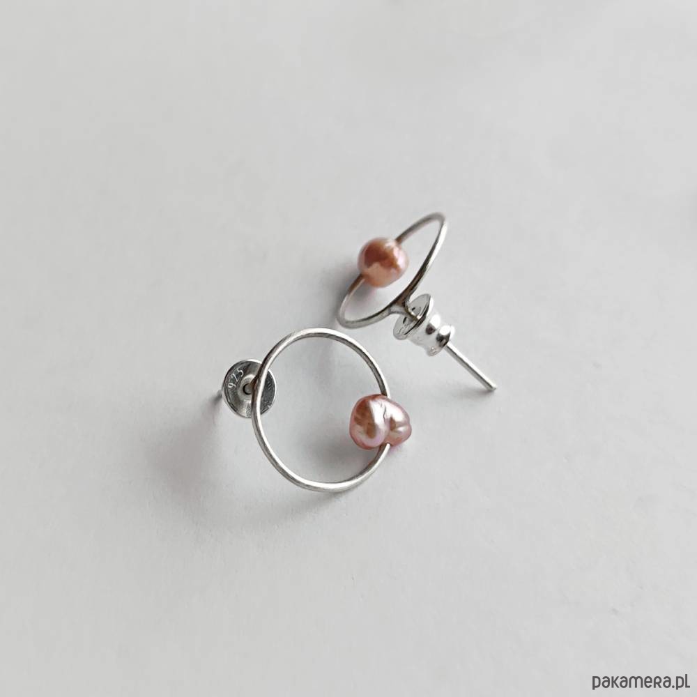 OKRĄG kolczyki Oryginalność i prostota. OKRĄG - kształt doskonały. Kolekcję cechuje elegancja i prostota jak również ekstrawagancja i indywidualizm. Kolczyki na sztyftach wykonane są z - srebro., perła słodkowodna biwa fioletowa 6x5mm. , Srebro - zmatowione. Szerokość ok. 1,5 cm.