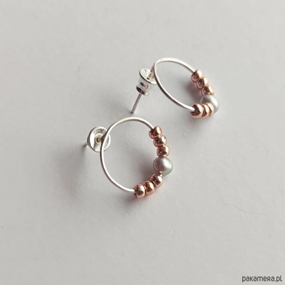 OKRĄG kolczyki - oryginalność i prostota. OKRĄG - kształt doskonały. Kolekcję cechuje elegancja i prostota jak również ekstrawagancja i indywidualizm. Kolczyki na sztyftach wykonane są z - srebro, Perła słodkowodna srebrna oponka 5x3mm,szklane koraliki. Srebro - zmatowione. Szerokość ok. 1,5 cm.