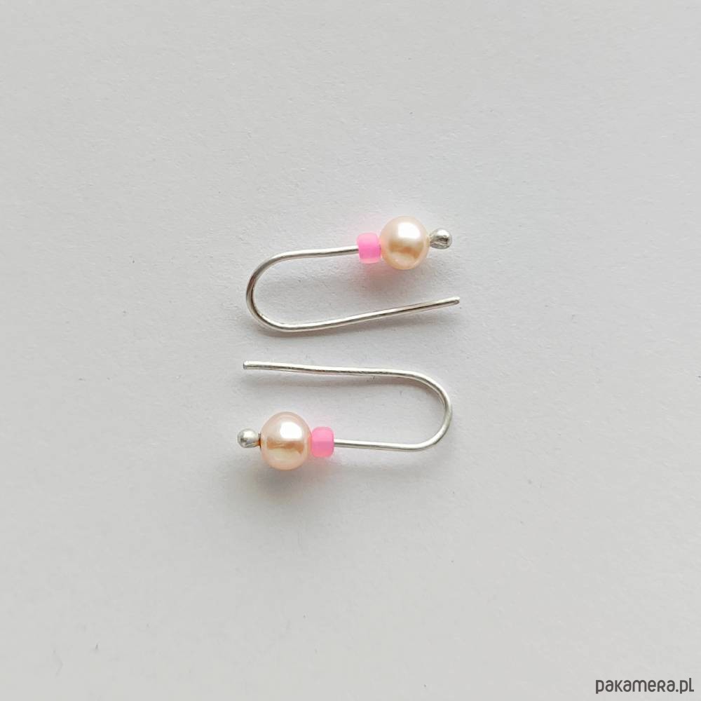 OKRĄG kolczyki . Oryginalność i prostota. OKRĄG - kształt doskonały. Kolekcję cechuje elegancja i prostota jak również ekstrawagancja i indywidualizm. Kolczyki wykonane są ręcznie z - srebro, Perła słodkowodna ( 6 mm), szklane koraliki. Srebro - zmatowione. Długość ok 1,7 cm. Polecam!