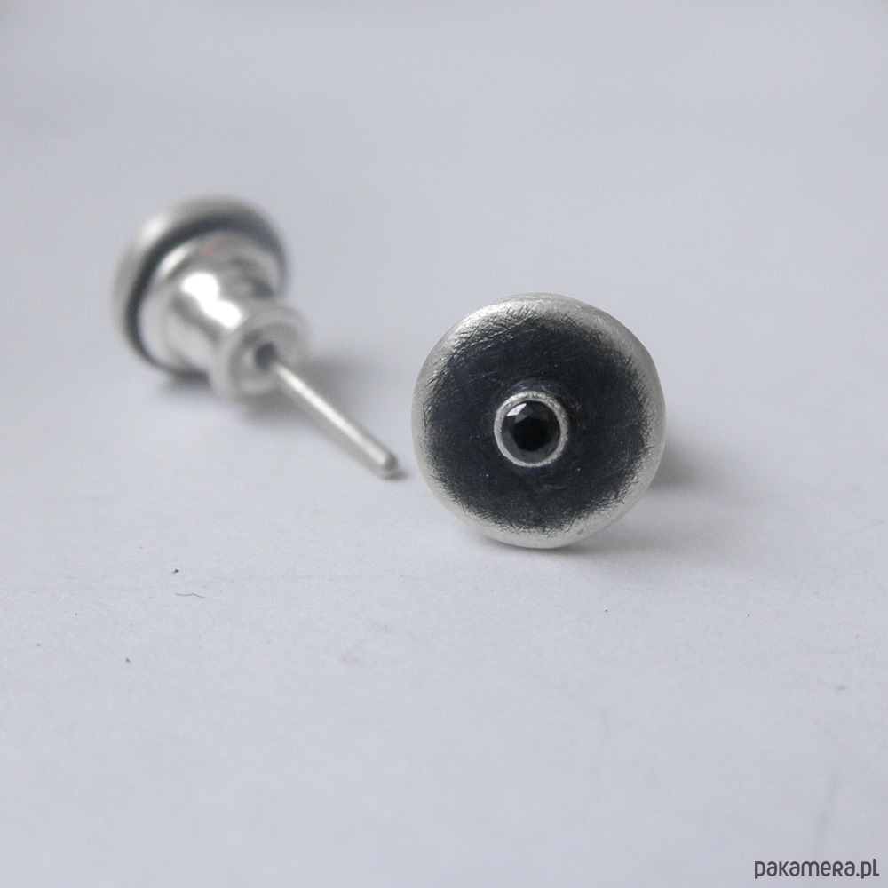 OKRĄG kolczyki. Oryginalność i prostota. OKRĄG - kształt doskonały. Kolekcję cechuje elegancja i prostota jak również ekstrawagancja i indywidualizm. Kolczyki na sztyftach wykonane są ze srebro, cyrkonia. Srebro - próby 0,925, zmatowione, oksydowane. Średnica kolczyka - 0,7 cm