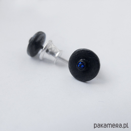 OKRĄG kolczyki. Oryginalność i prostota. OKRĄG - kształt doskonały. Kolekcję cechuje elegancja i prostota jak również ekstrawagancja i indywidualizm. Kolczyki na sztyftach wykonane są ze srebro, cyrkonia. Srebro - próby 0,925, zmatowione, oksydowane. Średnica kolczyka - 0,7 cm