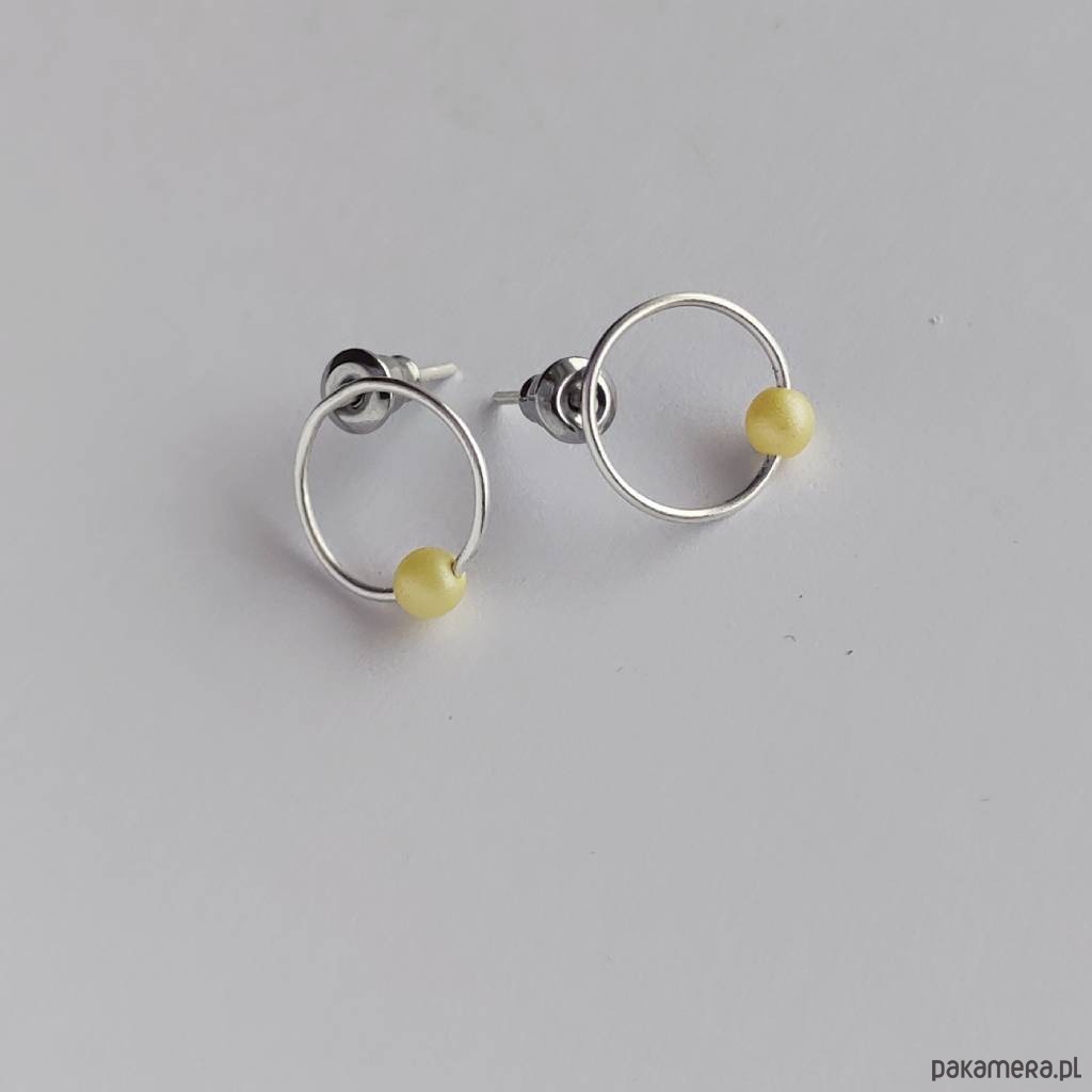 OKRĄG kolczyki Oryginalność i prostota. OKRĄG - kształt doskonały. Kolekcję cechuje elegancja i prostota jak również ekstrawagancja i indywidualizm. Kolczyki na sztyftach wykonane są ręcznie z - srebro, koraliki czeskie - 0,4 cm Srebro - zmatowione. Szerokość ok. 1,2 cm.
