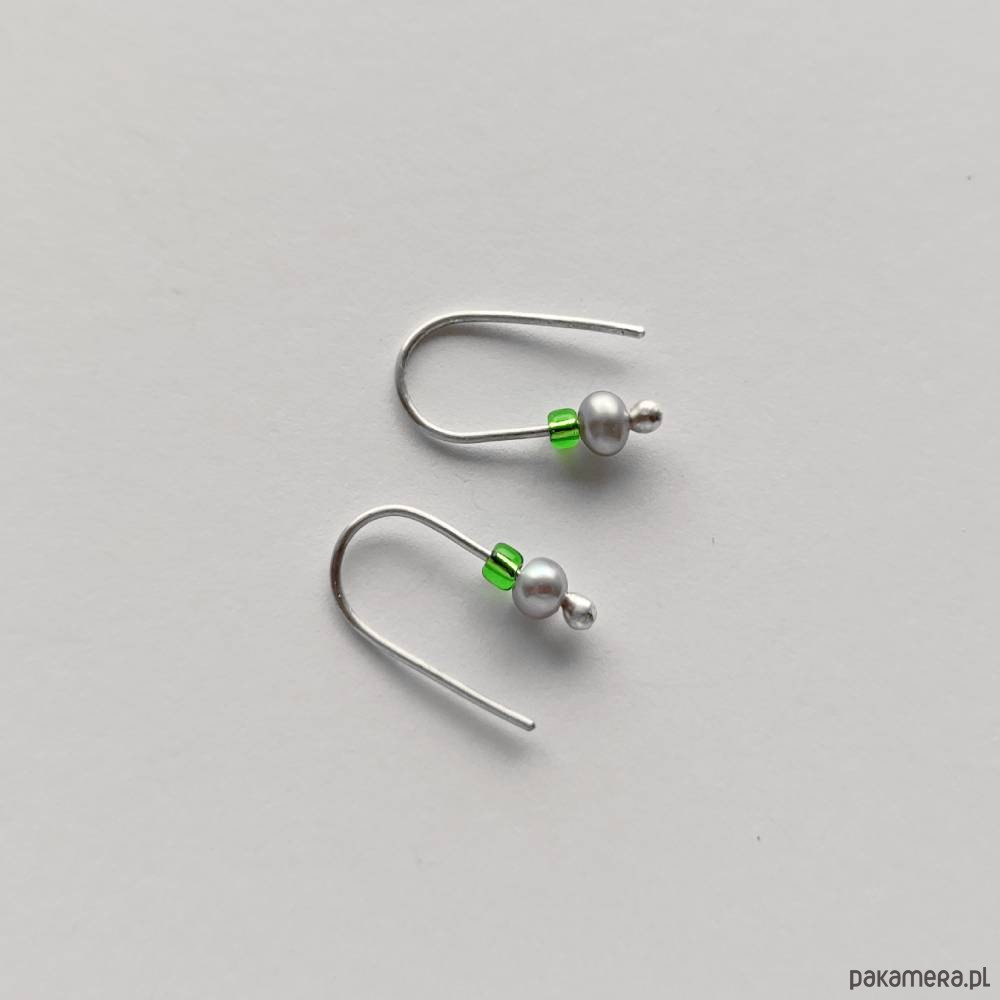 OKRŻĄG kolczyki Oryginalność i prostota. OKRĄG - kształt doskonały. Kolekcję cechuje elegancja i prostota jak również ekstrawagancja i indywidualizm. Kolczyki wykonane są ręcznie z - srebro, Perła słodkowodna srebrna oponka 5x3mm, szklane koraliki. Srebro - zmatowione. Długość ok 1,7 cm.