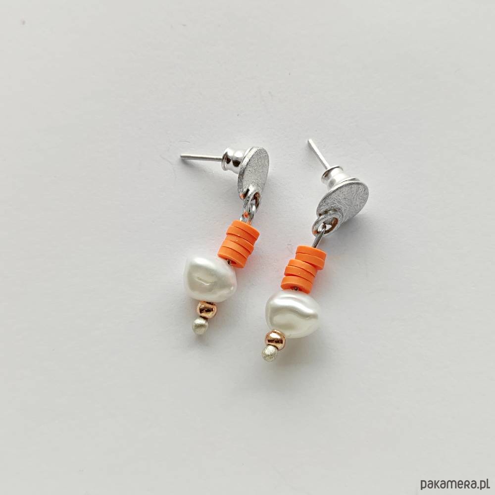 Oryginalność i prostota. OKRĄG - kształt doskonały. Kolekcję cechuje elegancja i prostota jak również ekstrawagancja i indywidualizm. Kolczyki na sztyftach wykonane są z : srebro, Perła hodowlana (0k. 0,8 cm), koraliki Katsuki (średnicy 4mm), szklane koraliki.Srebro - próby 0,925, zmatowione, . Długość kolczyków - ok. 3 cm