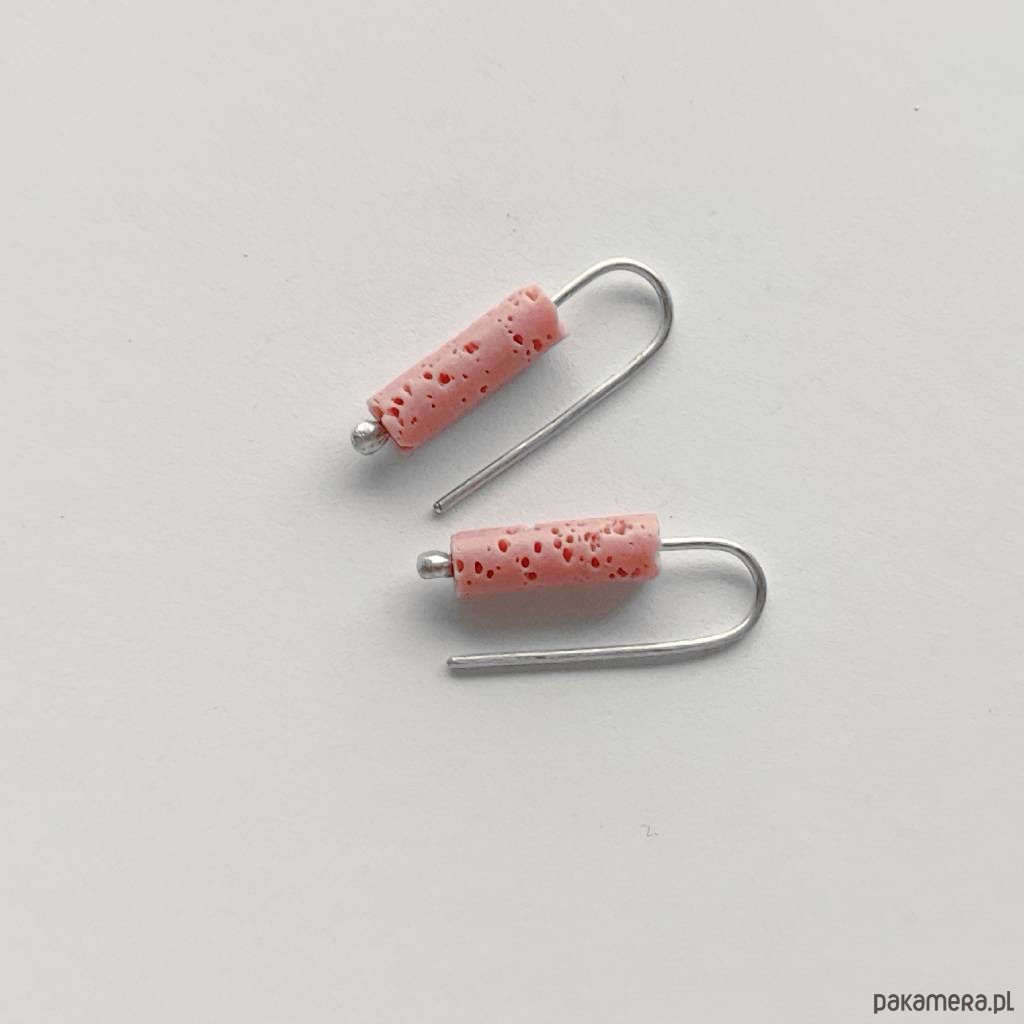 OKRĄG kolczyki Oryginalność i prostota. OKRĄG - kształt doskonały. Kolekcję cechuje elegancja i prostota jak również ekstrawagancja i indywidualizm. Kolczyki wykonane są ręcznie z - srebro, koral różowy 1,3 x 0,4 cm. Srebro - zmatowione. Długość ok 2 cm. Kolczyki są delikatne.