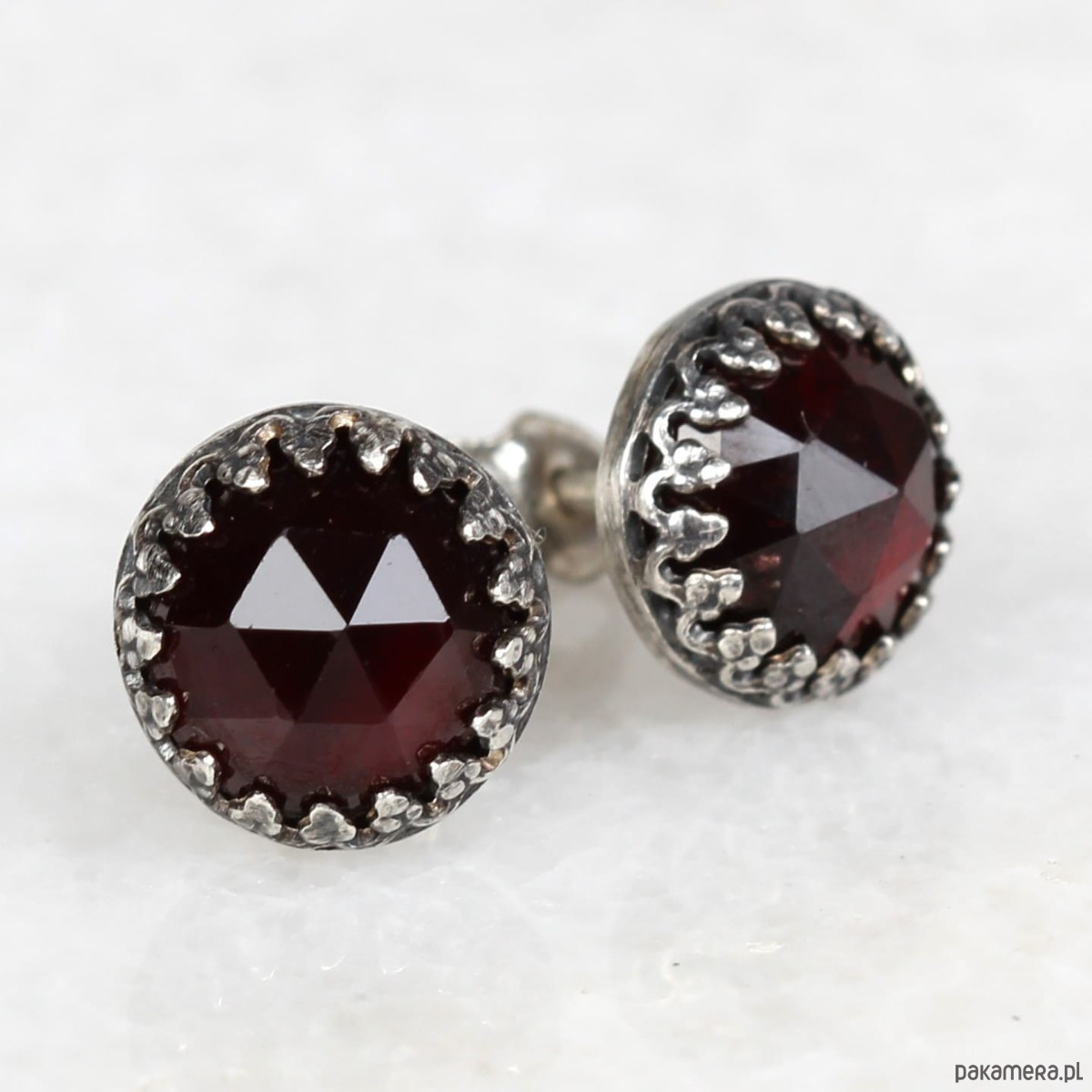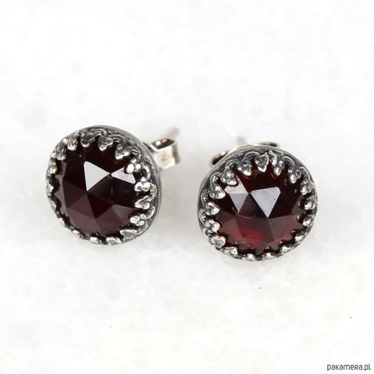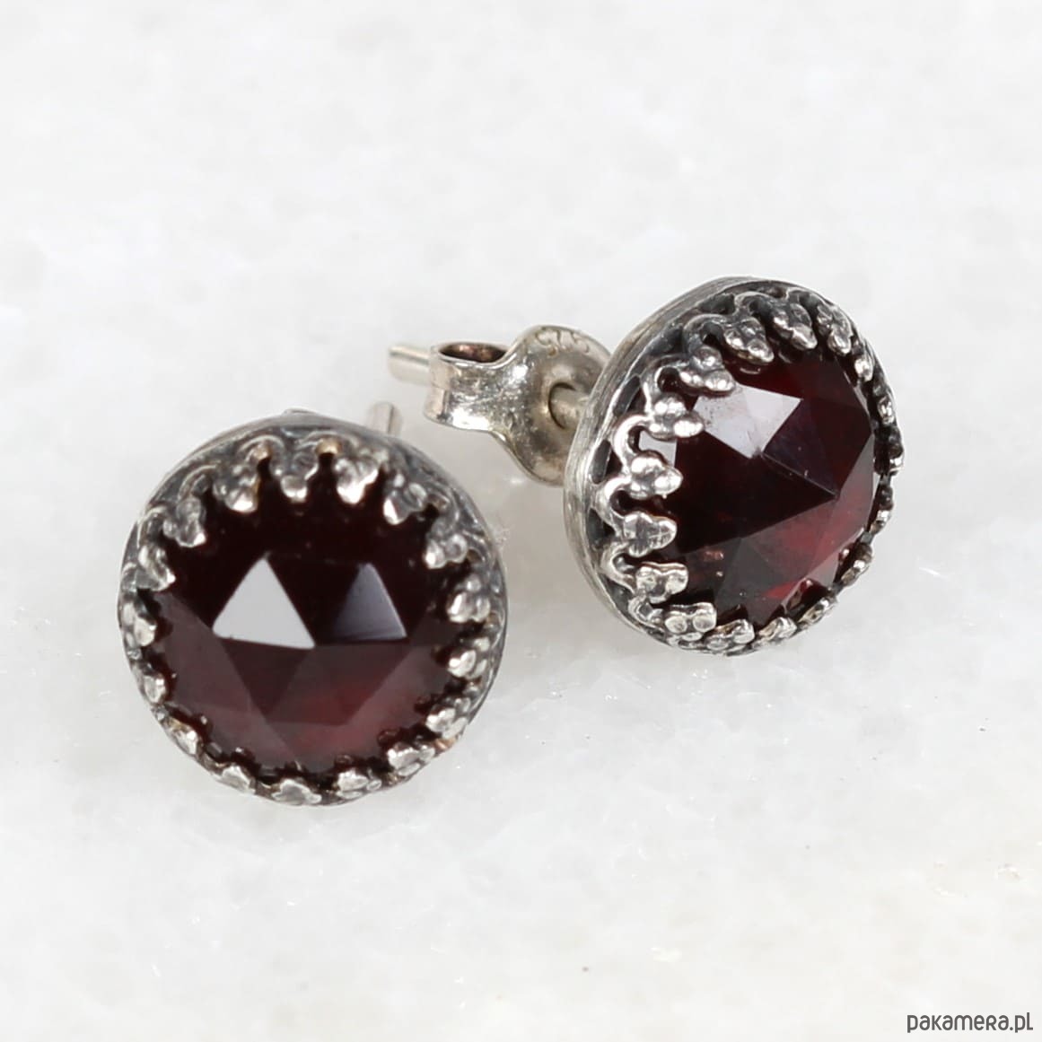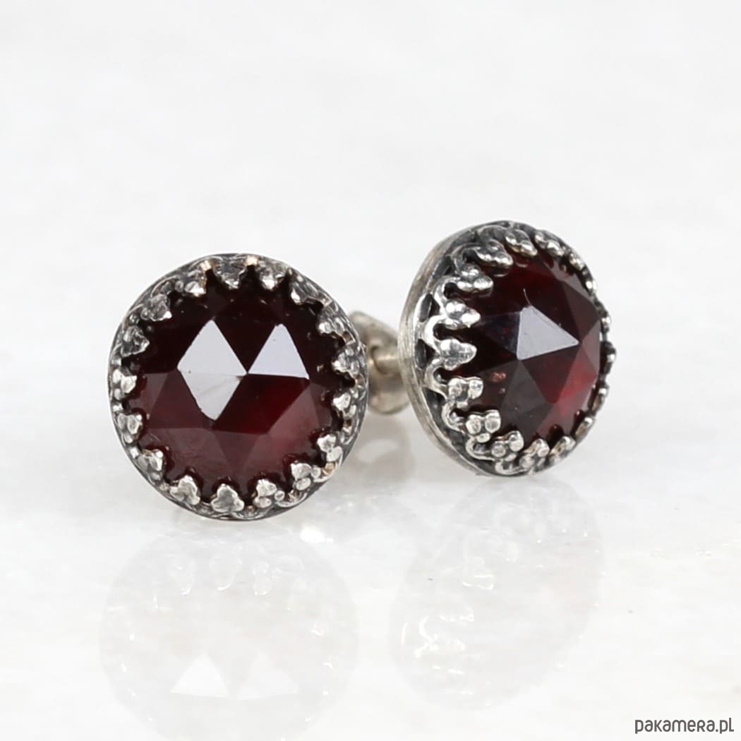 Kolczyki oksydowane sztyfty Petite z granatem