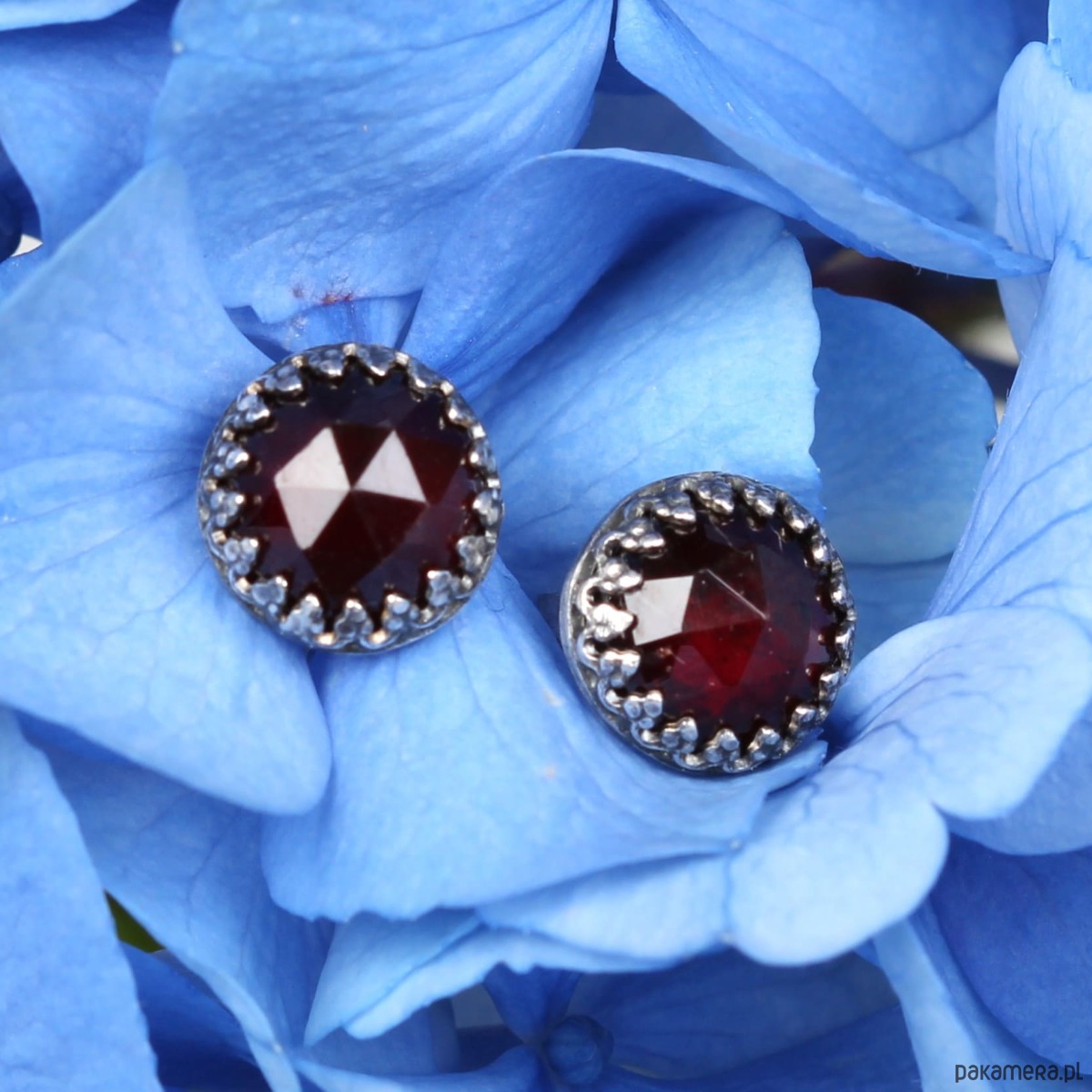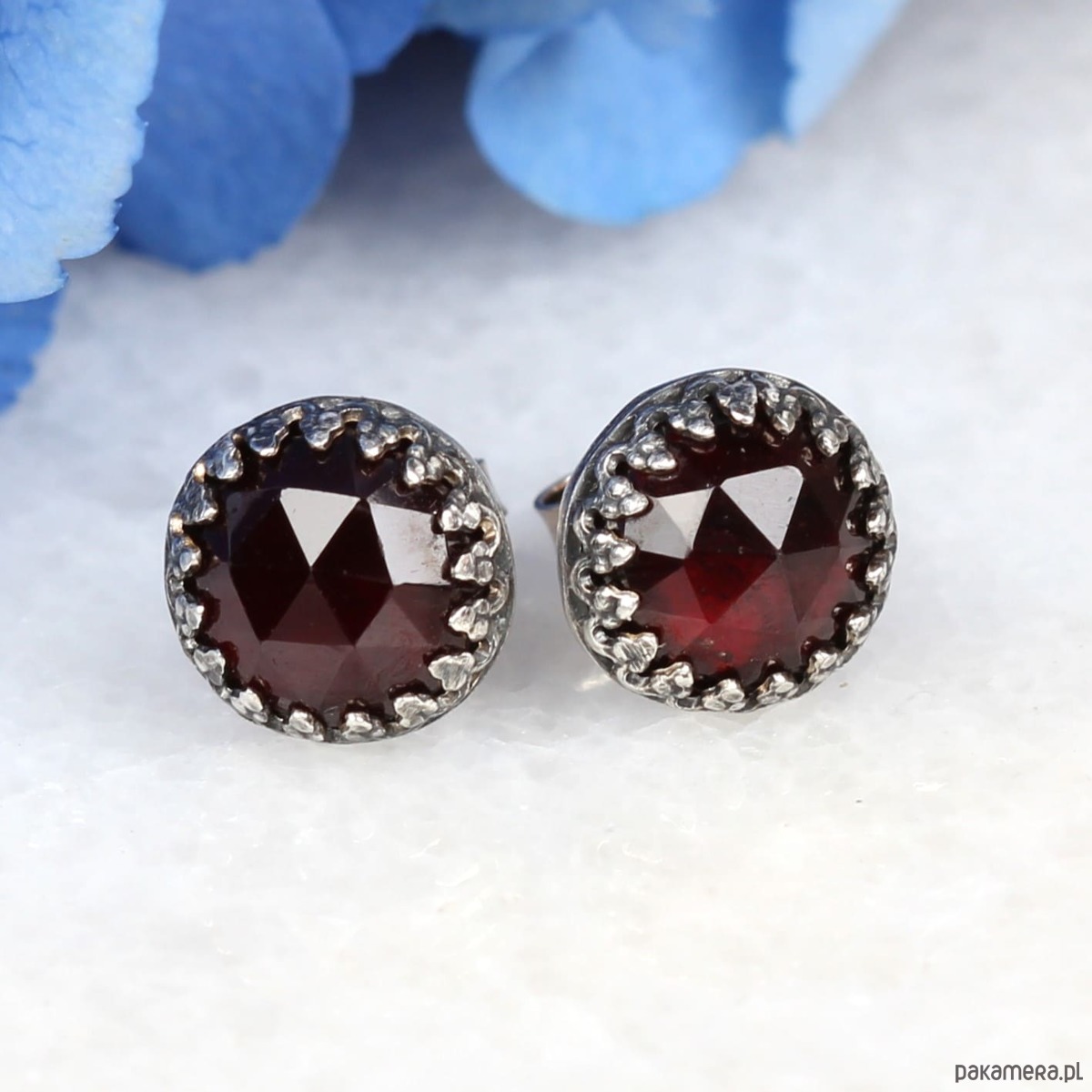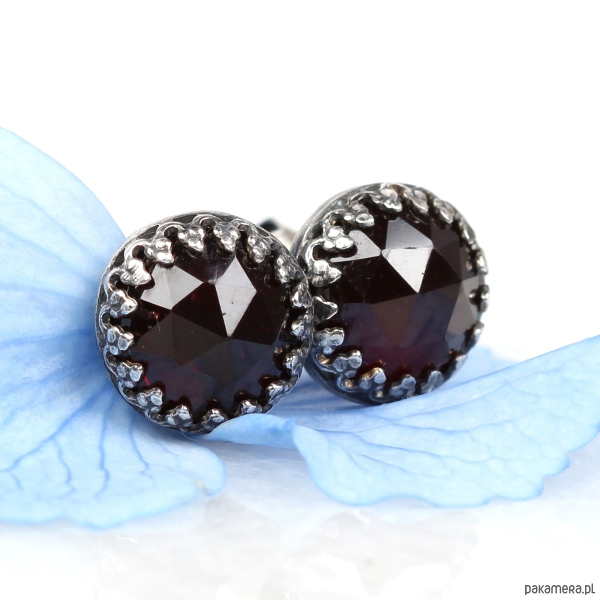 Kolczyki oksydowane sztyfty Petite z granatem