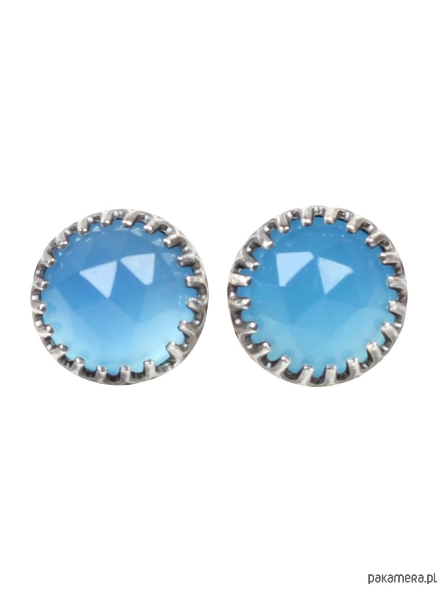 Kolczyki oksydowane sztyfty Mignon z niebieskim agatem