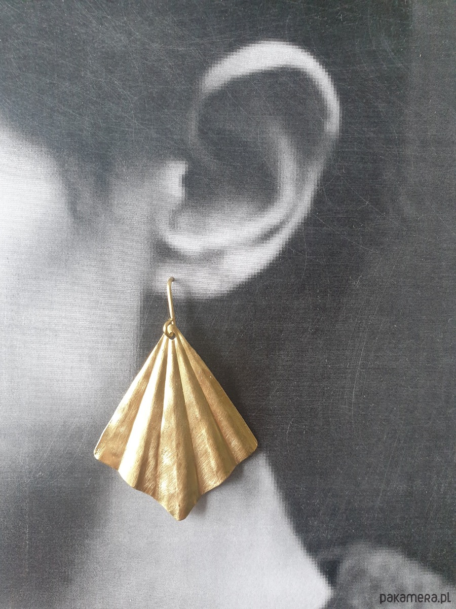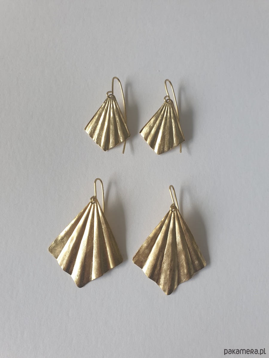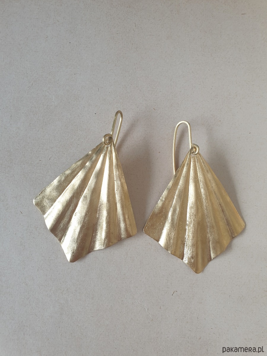 Kolczyki ORIGAMI duże wachlarze, mosiądz surowy złoty