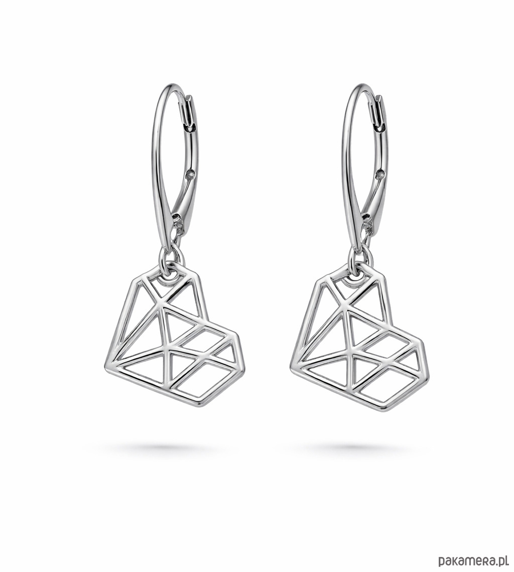 Kolczyki zapinane na bigiel angielski, w kształcie geometrycznych serc.
