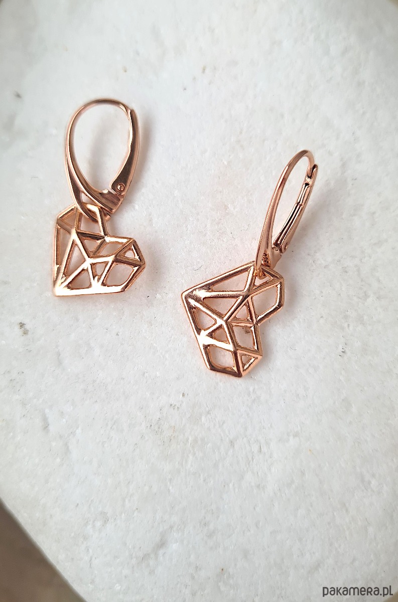 Kolczyki ORIGAMI HEARTS- srebro, złoto, różowe złoto