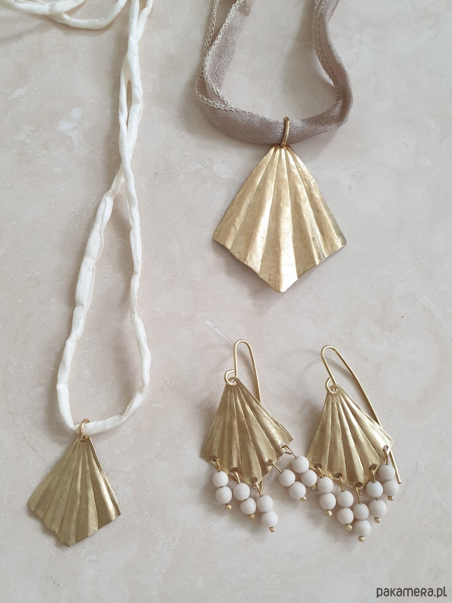 Kolczyki ORIGAMI wachlarze, jaspis river, mosiądz surowy