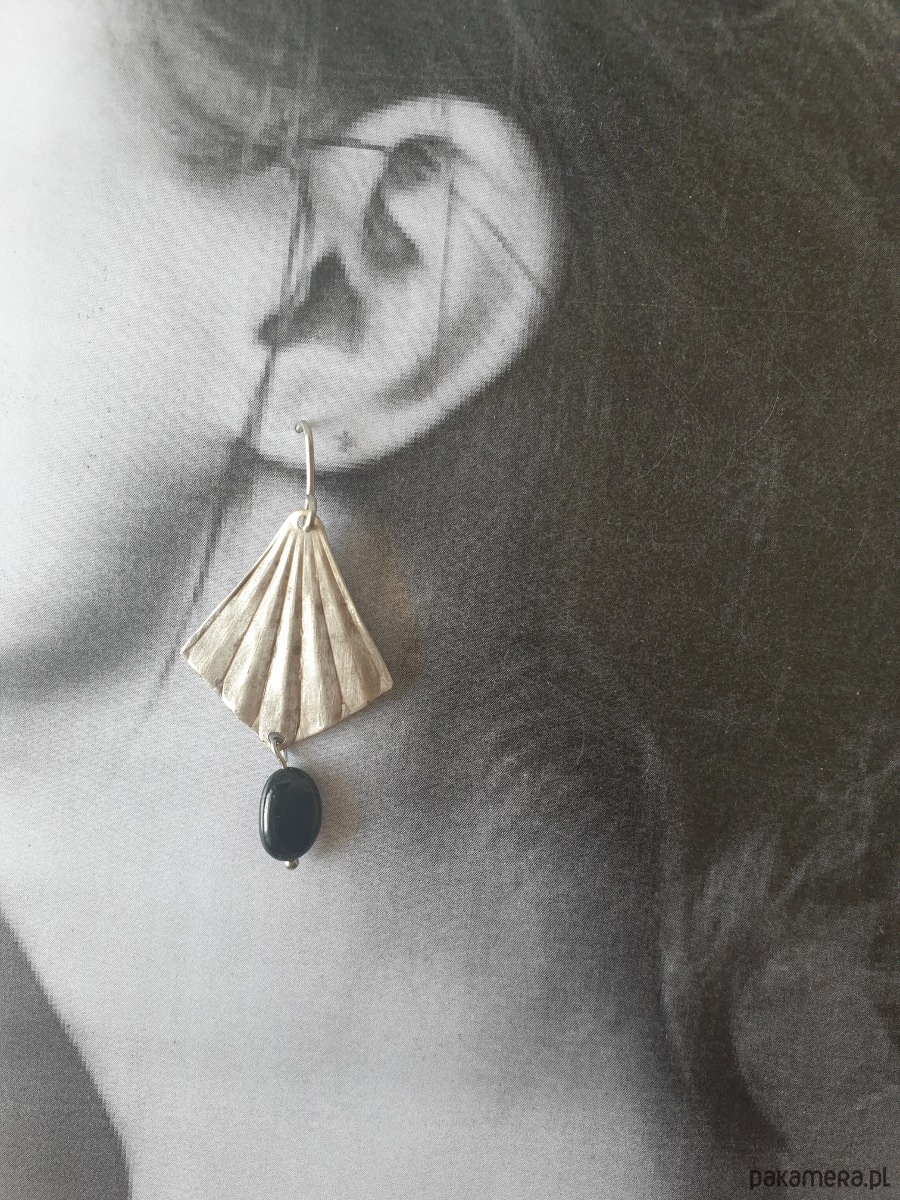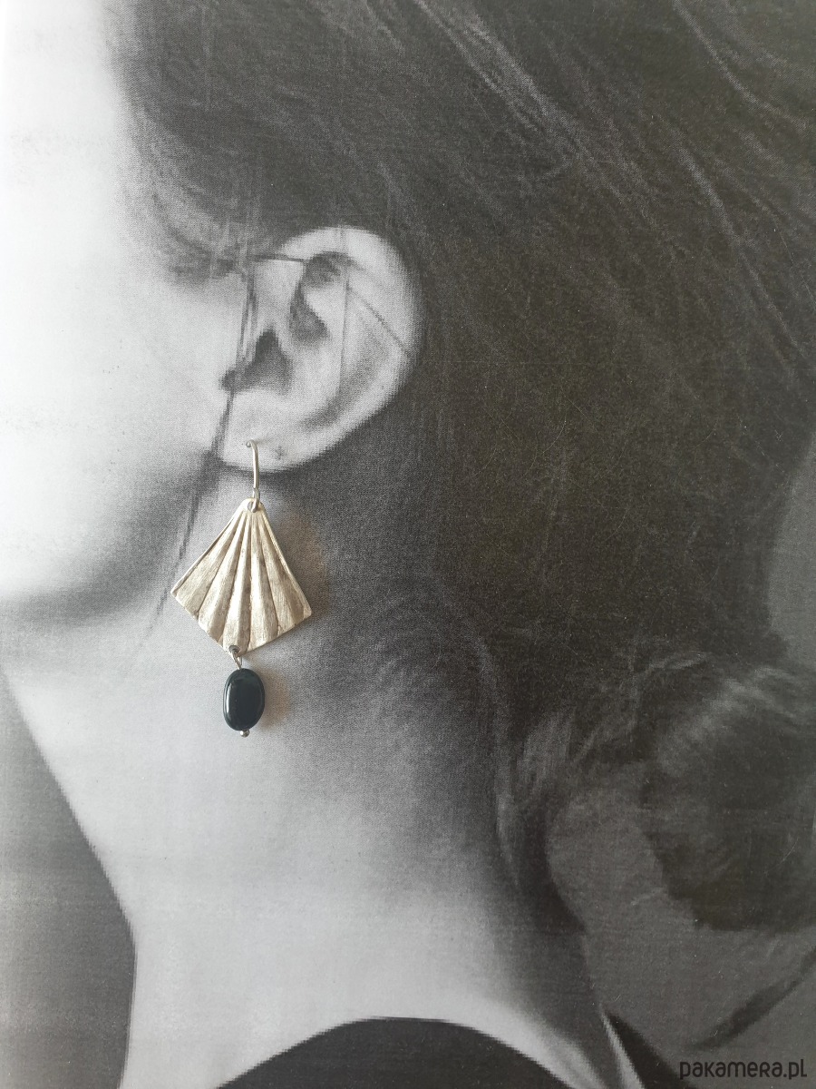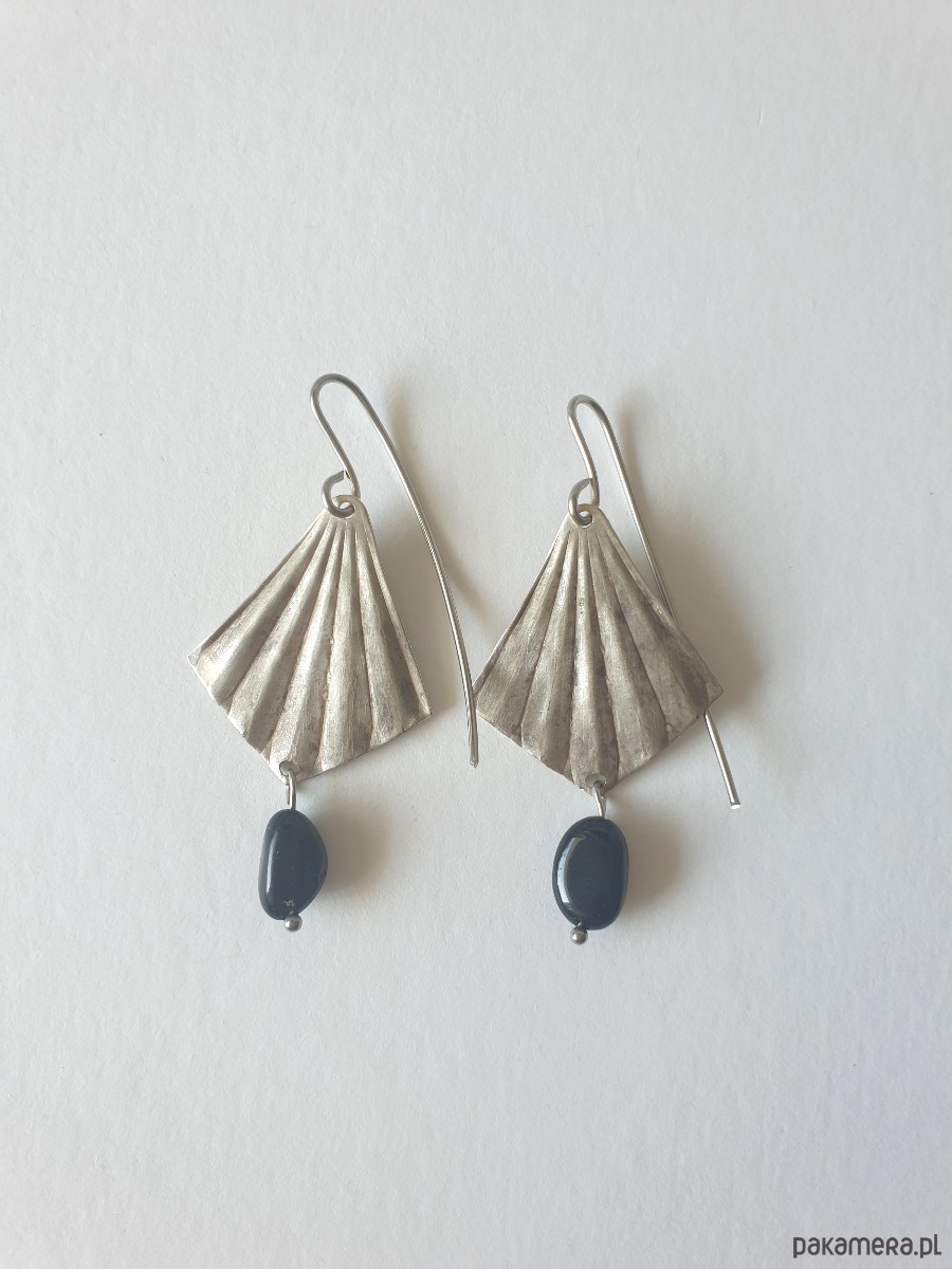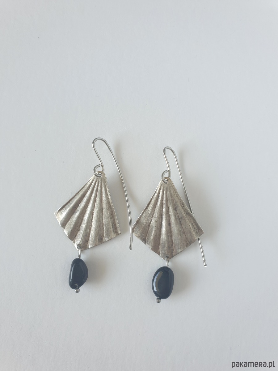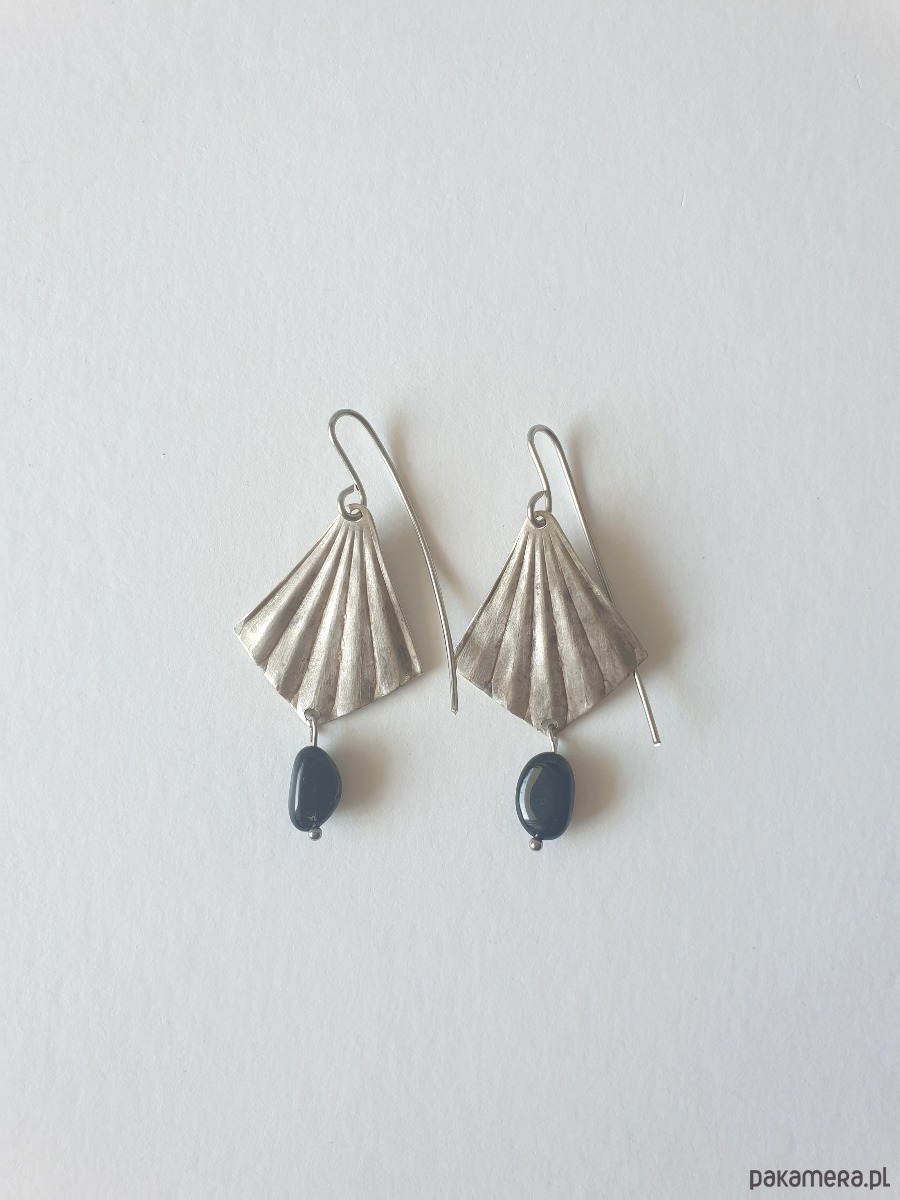 Kolczyki ORIGAMI wachlarze z czarnym turmalinem