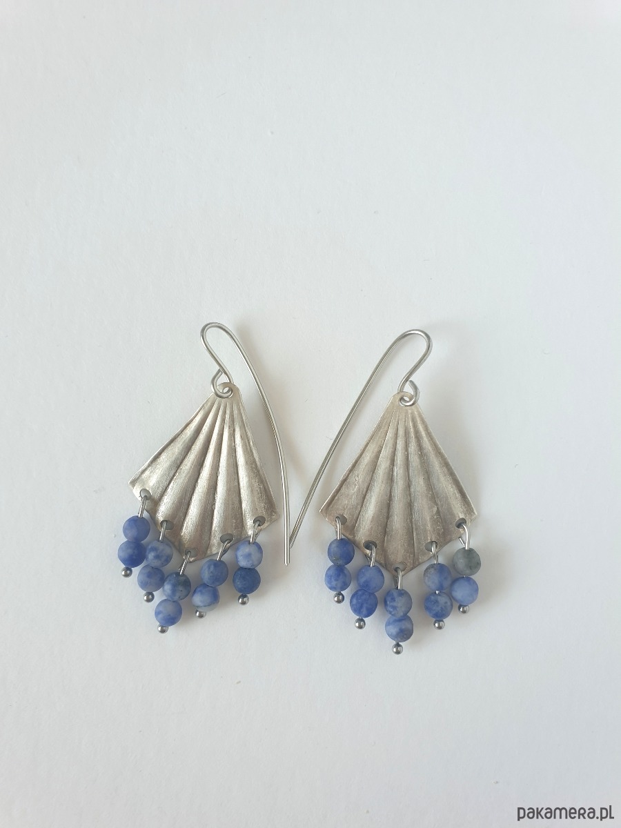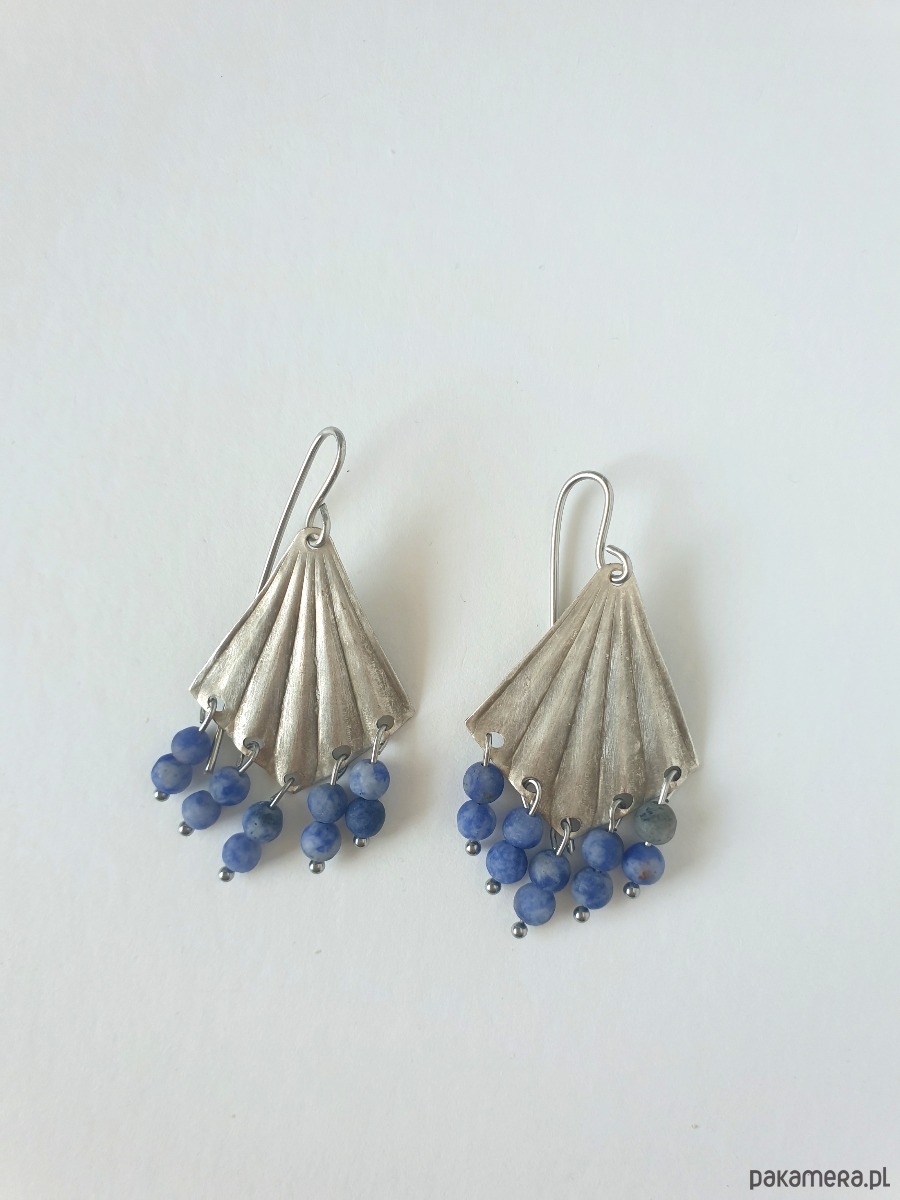Kolczyki ORIGAMI wachlarze z jaspisem niebieskim