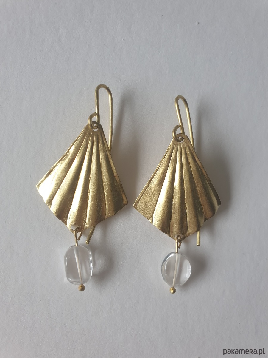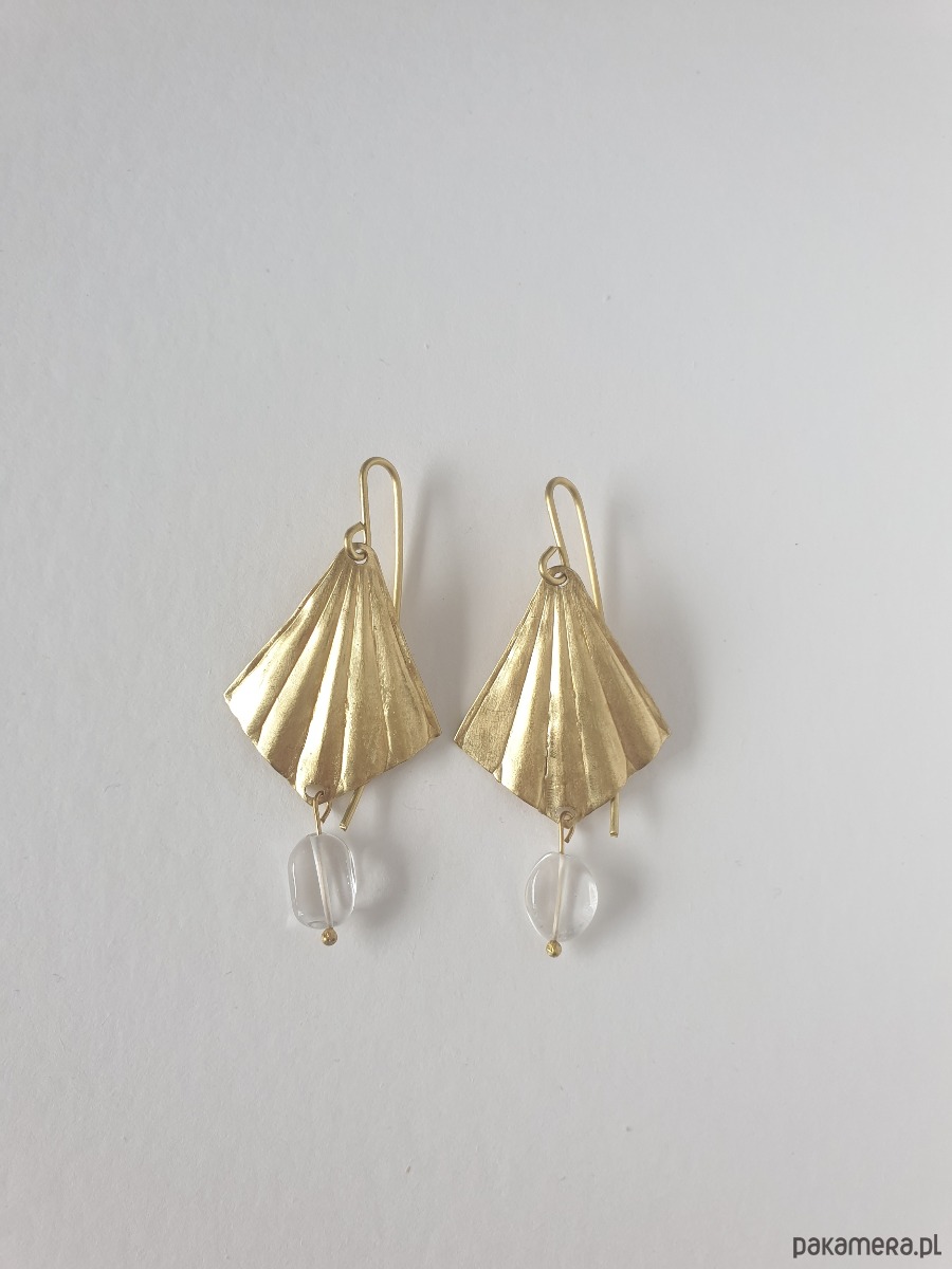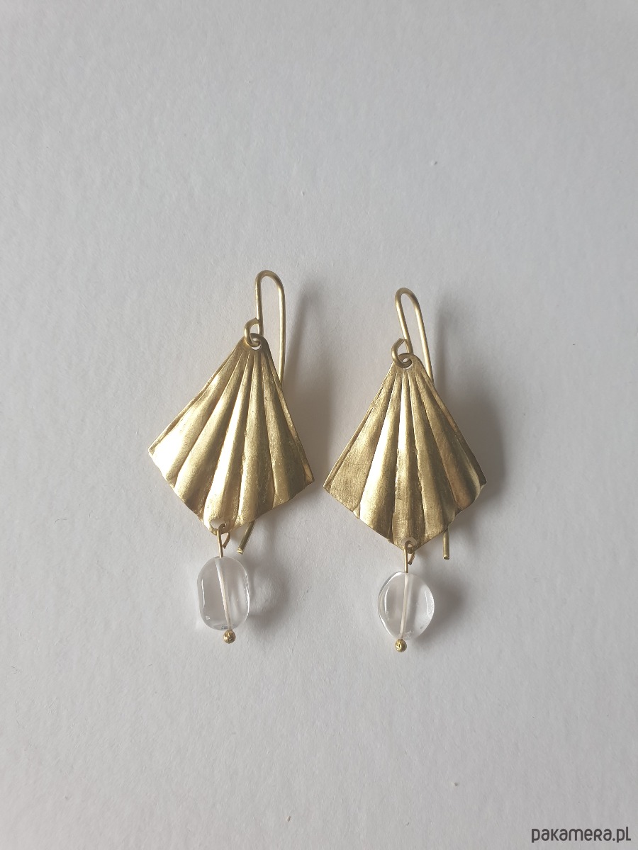 Kolczyki ORIGAMI wachlarze z kryształem górskim, mosiądz