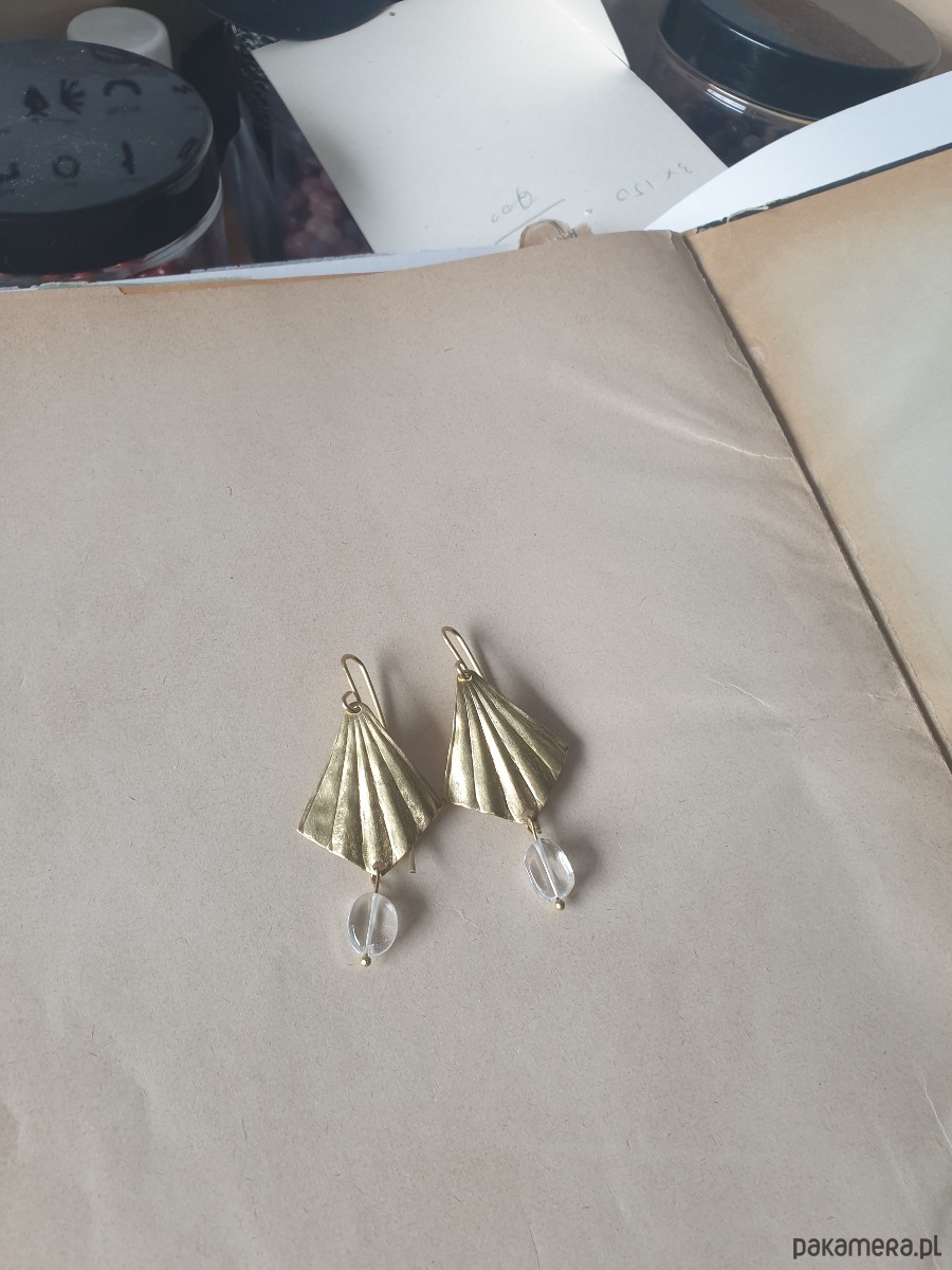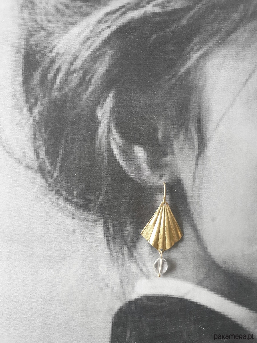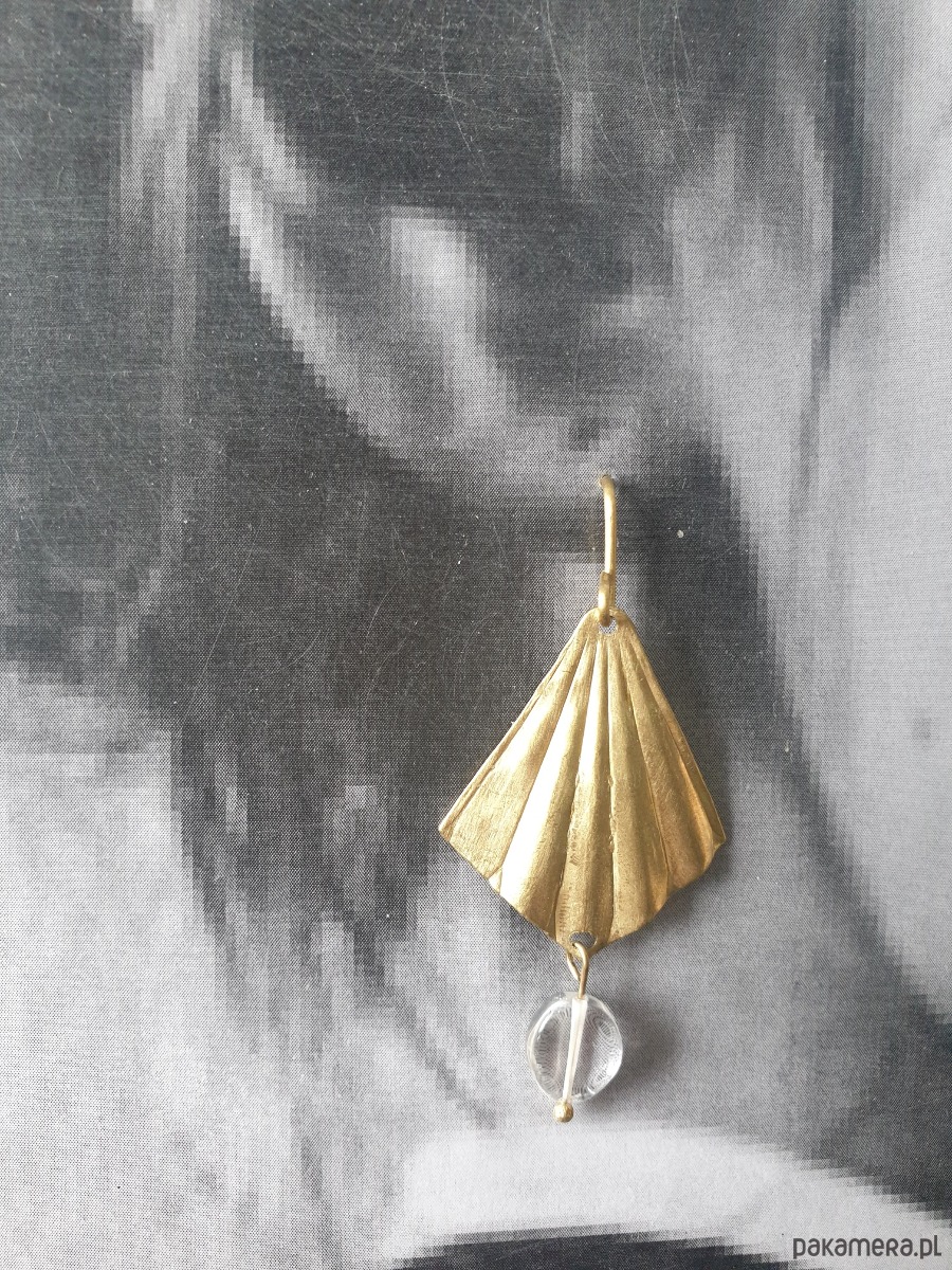 Kolczyki ORIGAMI wachlarze z kryształem górskim, mosiądz