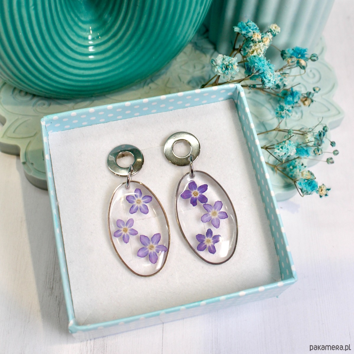 Kolczyki wykonane z żywicy UV.