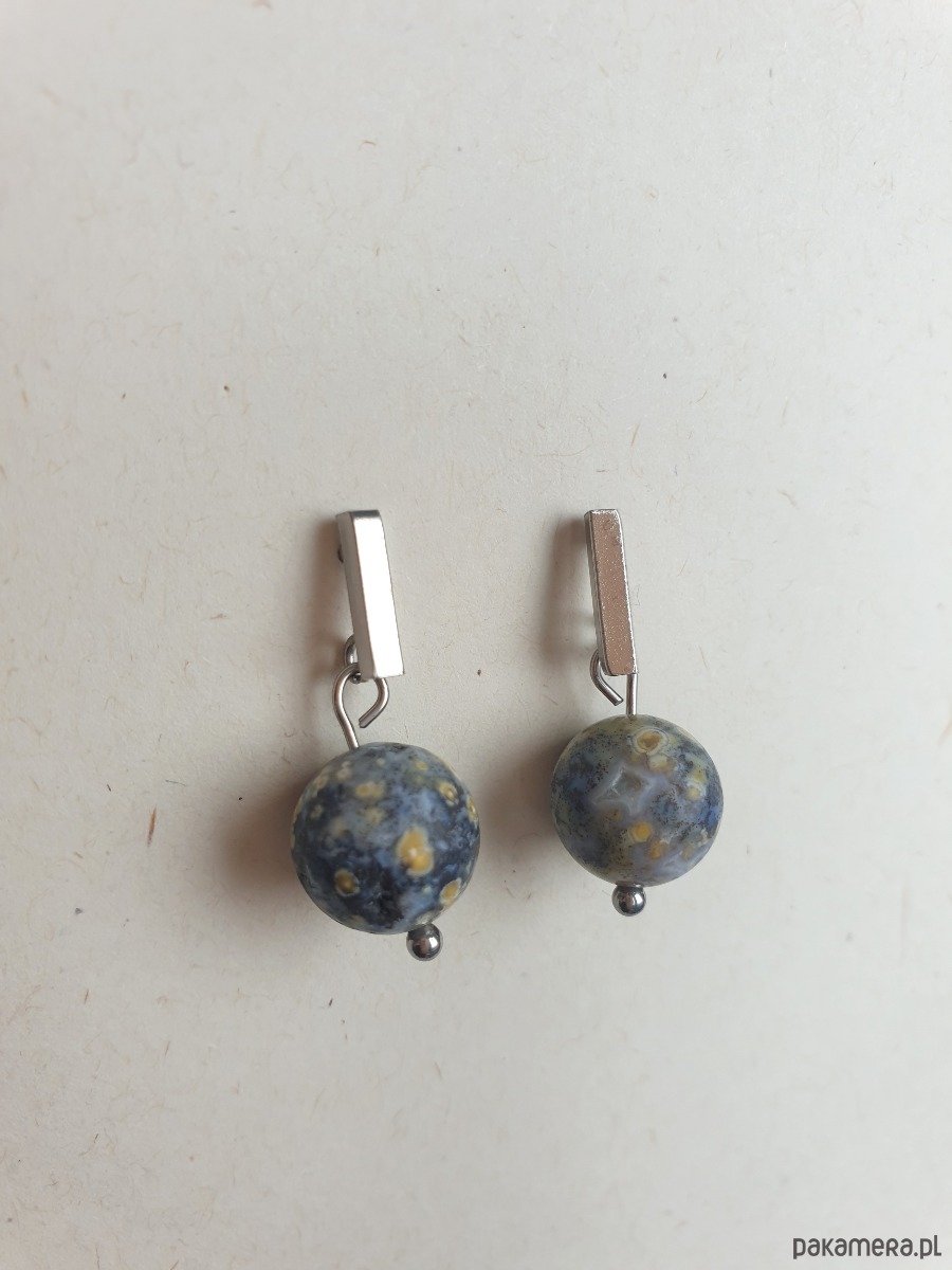 Drobne kolczyk PATYCZKI z kulką- jaspis oceaniczny, idealne na wieczorne wyjście ale też na co dzień. .