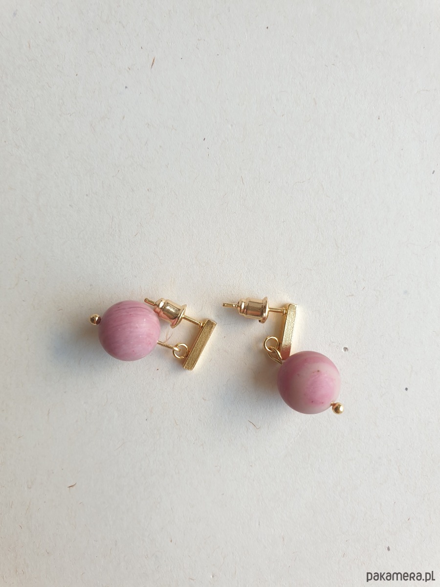 Drobne kolczyk PATYCZKI z kulką rodonitu, idealne na wieczorne wyjście ale też na co dzień.
