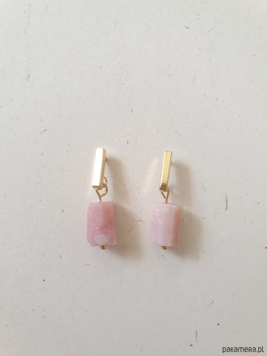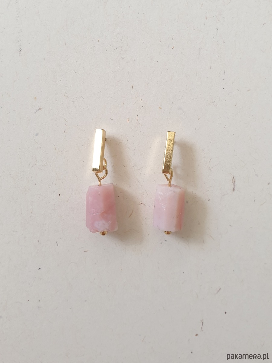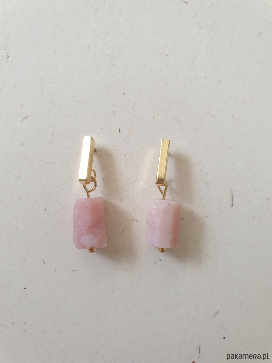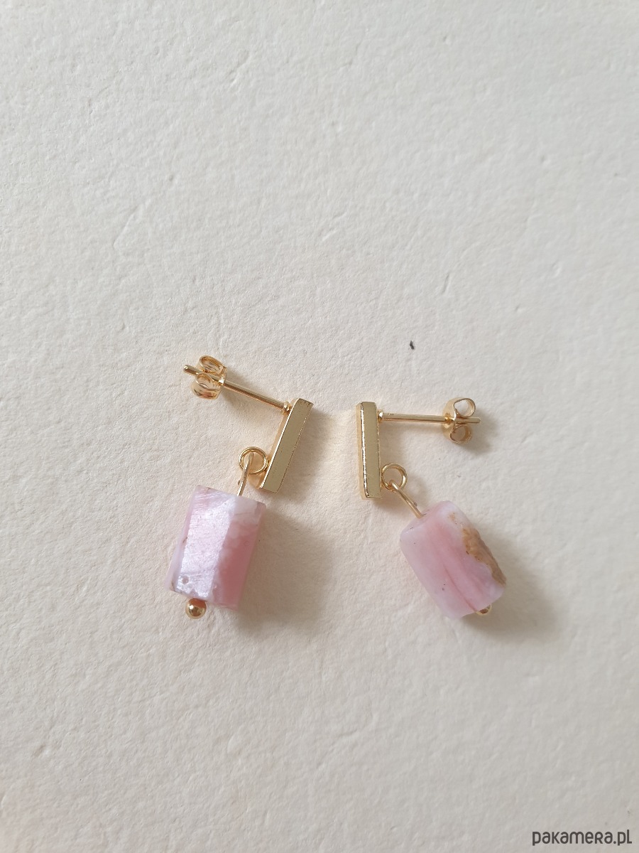 Drobne kolczyk PATYCZKI z kamieniem walcem- opal indyjski różowy, idealne na wieczorne wyjście ale też na co dzień. Na zdjęciu przykładowa para, kolczyki które kupujesz będą się minimalnie różnić bo każdy kamień jest wyjątkowy, ale zachowany będzie ten sam kształt i kolor.
