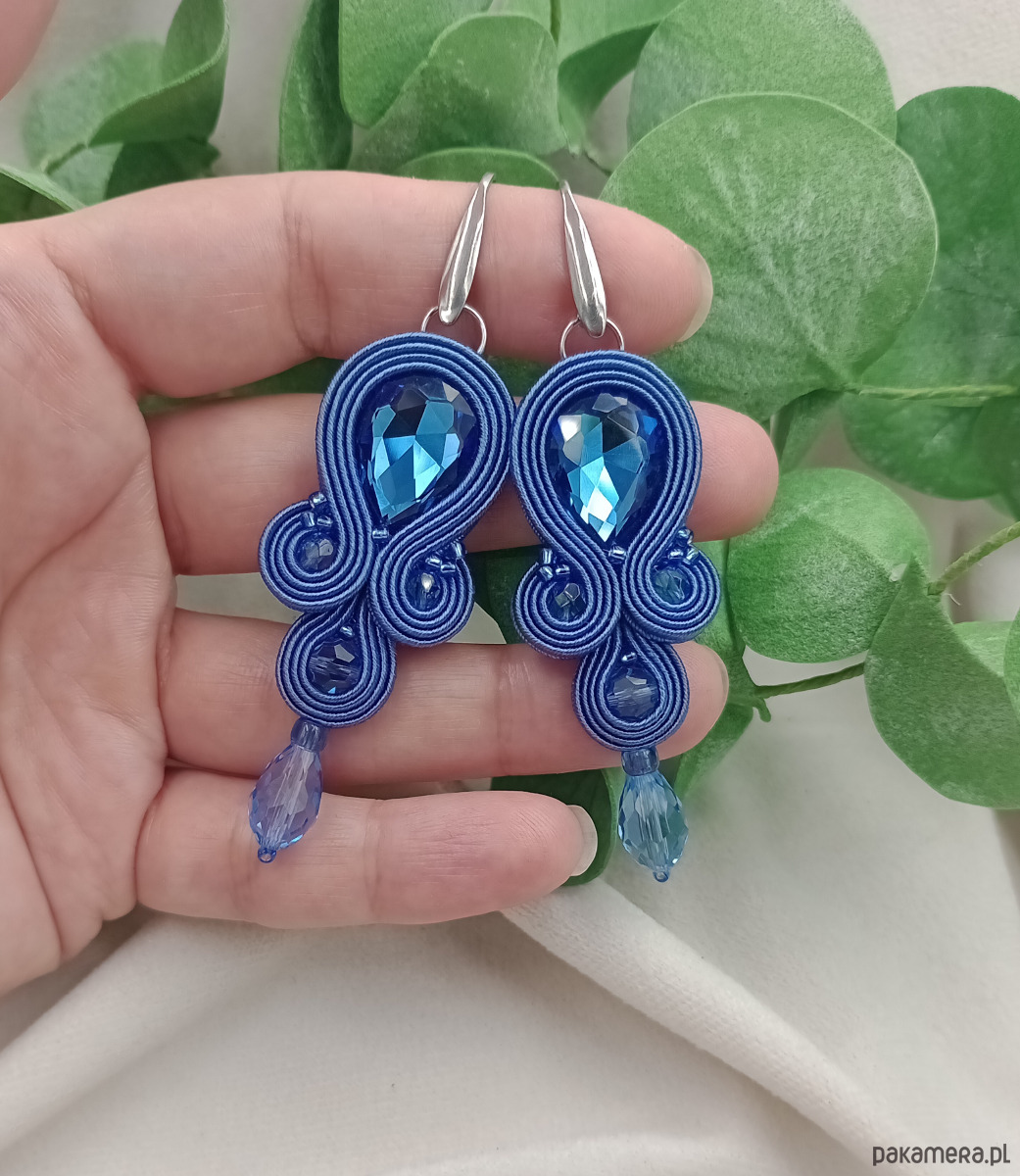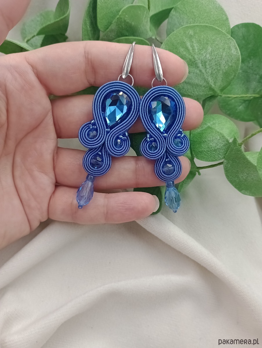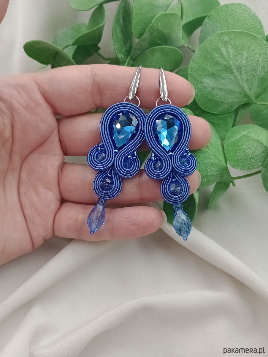 Kryształy Sapphire o pięknym połysku, włoski sutasz - ale ten model może powstać w każdym dowolnym kolorze - zarówno sutaszu, jak i kryształów, jak i koralików - mam szeroką paletę barw, kilkadziesiąt odcieni.