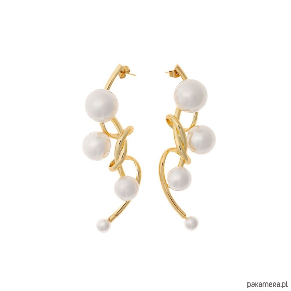 Eleganckie kolczyki o subtelnej, falującej formie, wykonane z perłowych elementów i pozłacanych detali, które razem tworzą lekką, kobiecą i bardzo szlachetną kompozycję. Delikatne linie kolczyków pięknie układają się przy uchu, dodając stylizacji finezji i klasy.