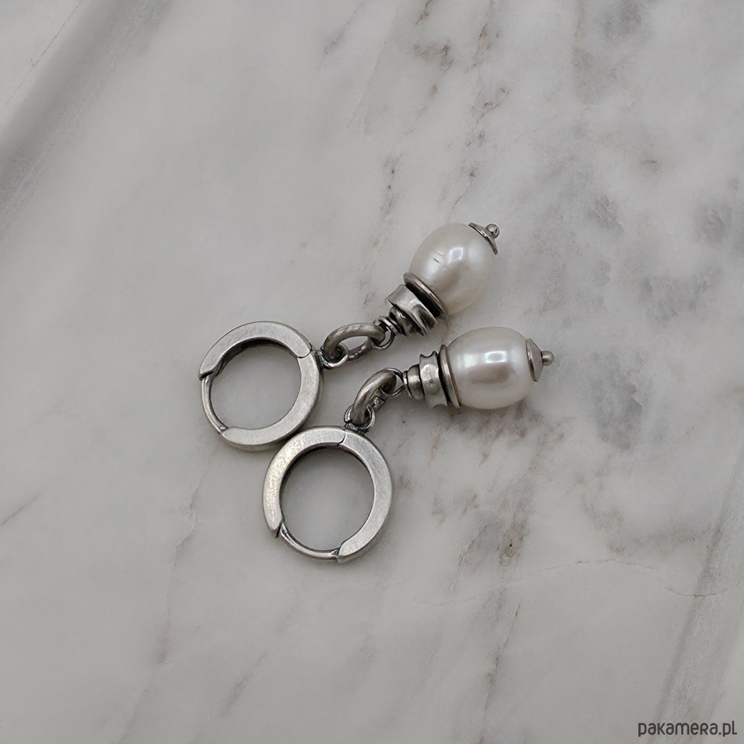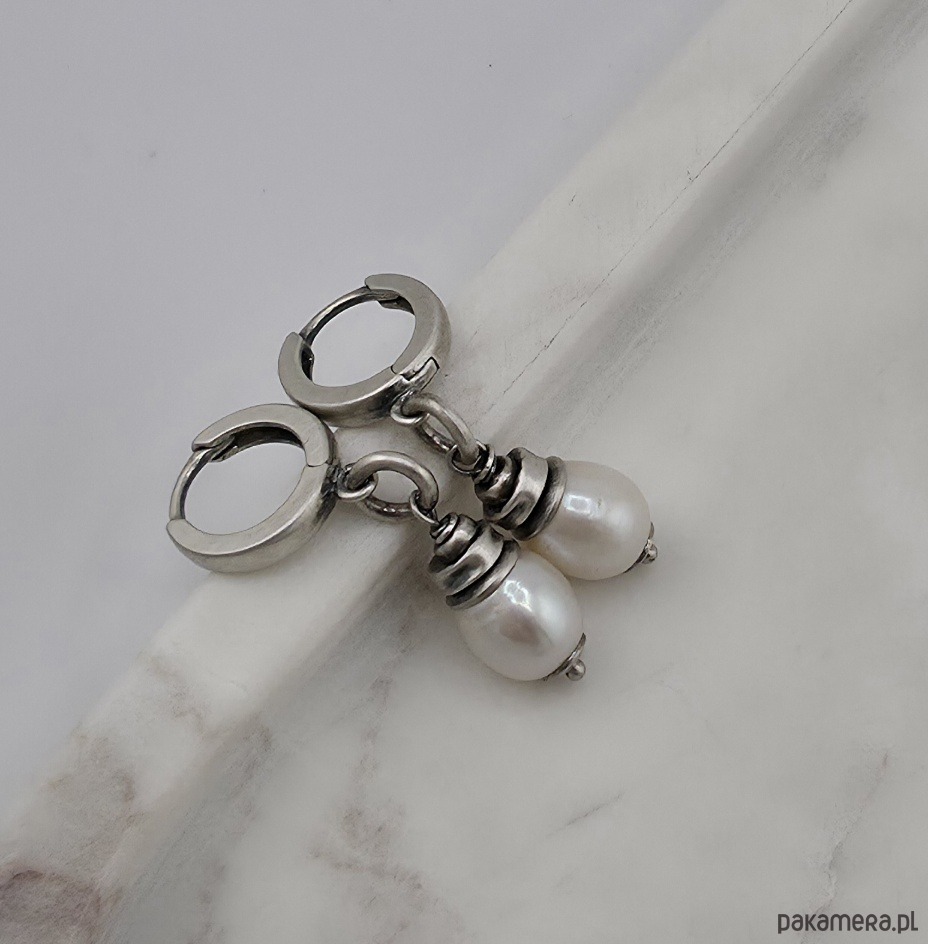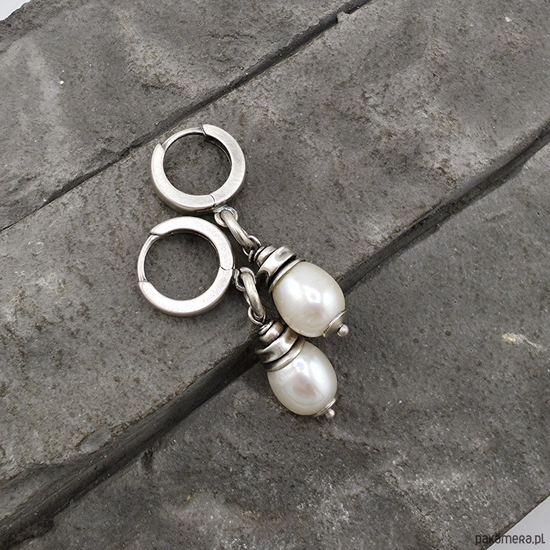 Proste, eleganckie, minimalistyczne kolczyki na co dzień. Wykonane w całości z oksydowanego srebra próby 925 oraz naturalnych, białych pereł słodkowodnych wielkości ok. 0,9 cm. Długość całkowita to ok. 3,5 cm. Bigle typu kajdanki, zatrzaskowe. Na życzenie mogę ich nie oksydowac. W mojej galerii znajduja się podobne kolczyki z innymi kamieniami. Ozdobnie zapakowane.