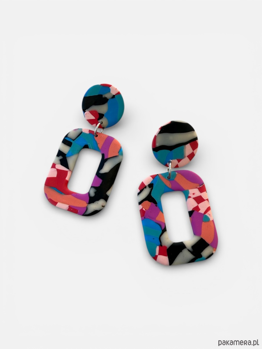 Oryginalne kolczyki wykonane ręcznie z dbałością o szczegóły z profesjonalnej glinki polimerowej, wypalane w piecu i szlifowane w domowej pracowni. Każda para kolczyków jest niepowtarzalna i wyjątkowa. Kolczyki są bardzo lekkie i wygodne, nie obciążają płatka ucha i przyciągają spojrzenia. Zapinane na sztyft ze stali chirurgicznej.