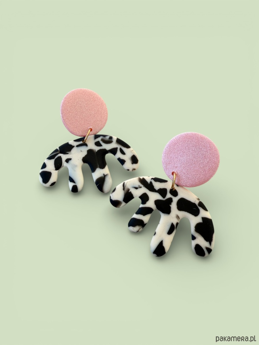 Oryginalne kolczyki wykonane ręcznie z dbałością o szczegóły z profesjonalnej glinki polimerowej, wypalane w piecu i szlifowane w domowej pracowni. Każda para kolczyków jest niepowtarzalna i wyjątkowa. Kolczyki są bardzo lekkie i wygodne, nie obciążają płatka ucha i przyciągają spojrzenia. Zapinane na sztyft ze stali chirurgicznej.