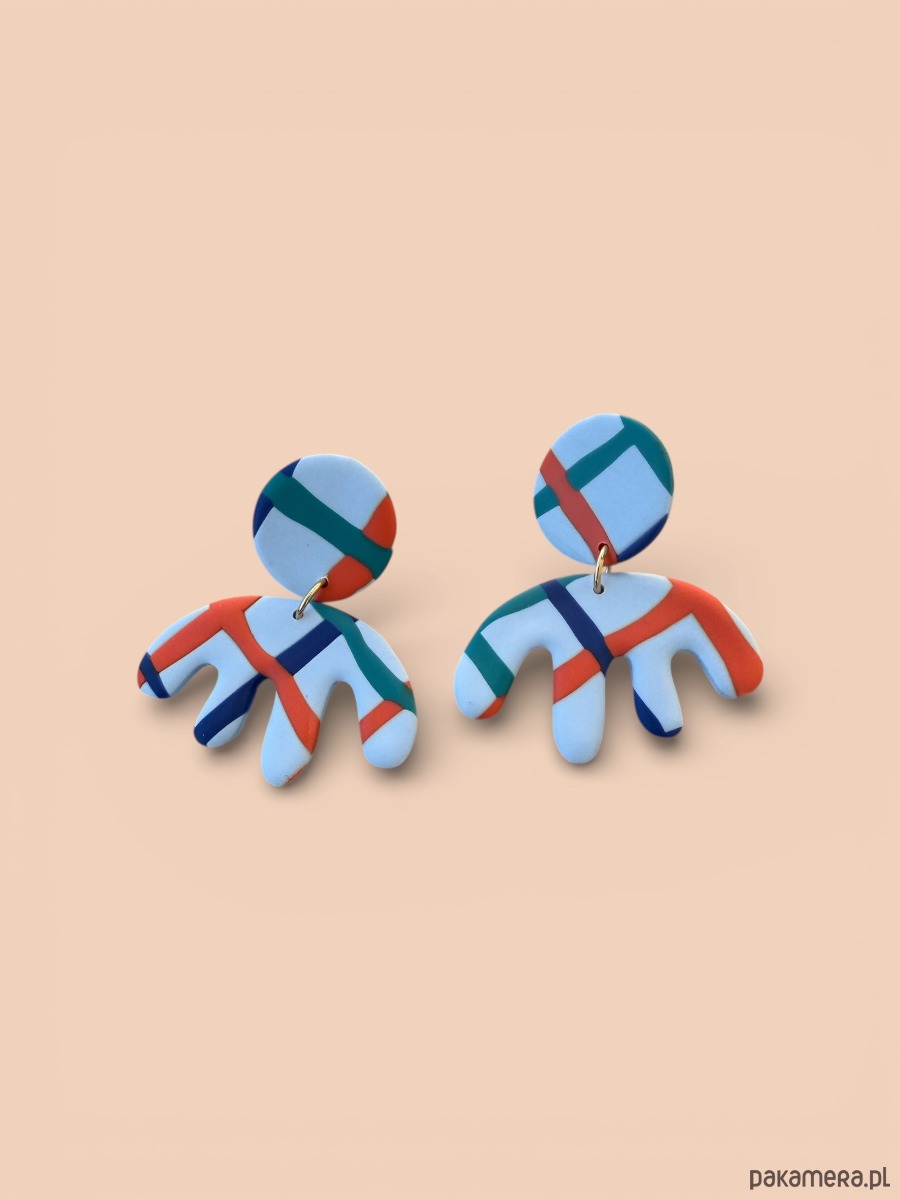 Oryginalne kolczyki wykonane ręcznie z dbałością o szczegóły z profesjonalnej glinki polimerowej, wypalane w piecu i szlifowane w domowej pracowni. Każda para kolczyków jest niepowtarzalna i wyjątkowa. Kolczyki są bardzo lekkie i wygodne, nie obciążają płatka ucha i przyciągają spojrzenia. Zapinane na sztyft ze stali chirurgicznej.
